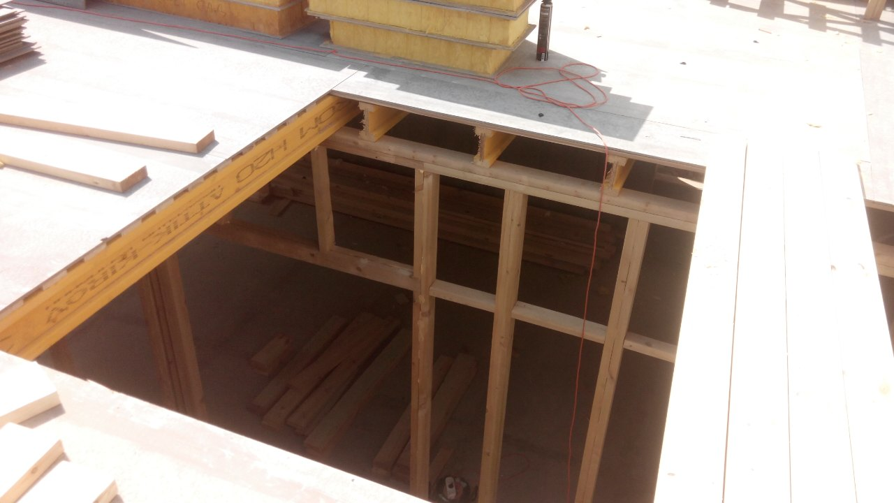 Ростверк изготовлен из калиброванного клееного бруса и защищен снаружи цементно-стружечной плитой