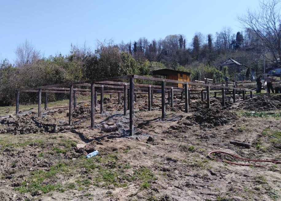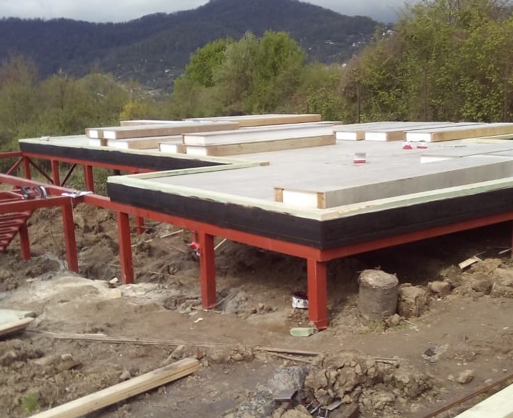 Ростверк изготовлен из калиброванного клееного бруса и защищен снаружи цементно-стружечной плитой
