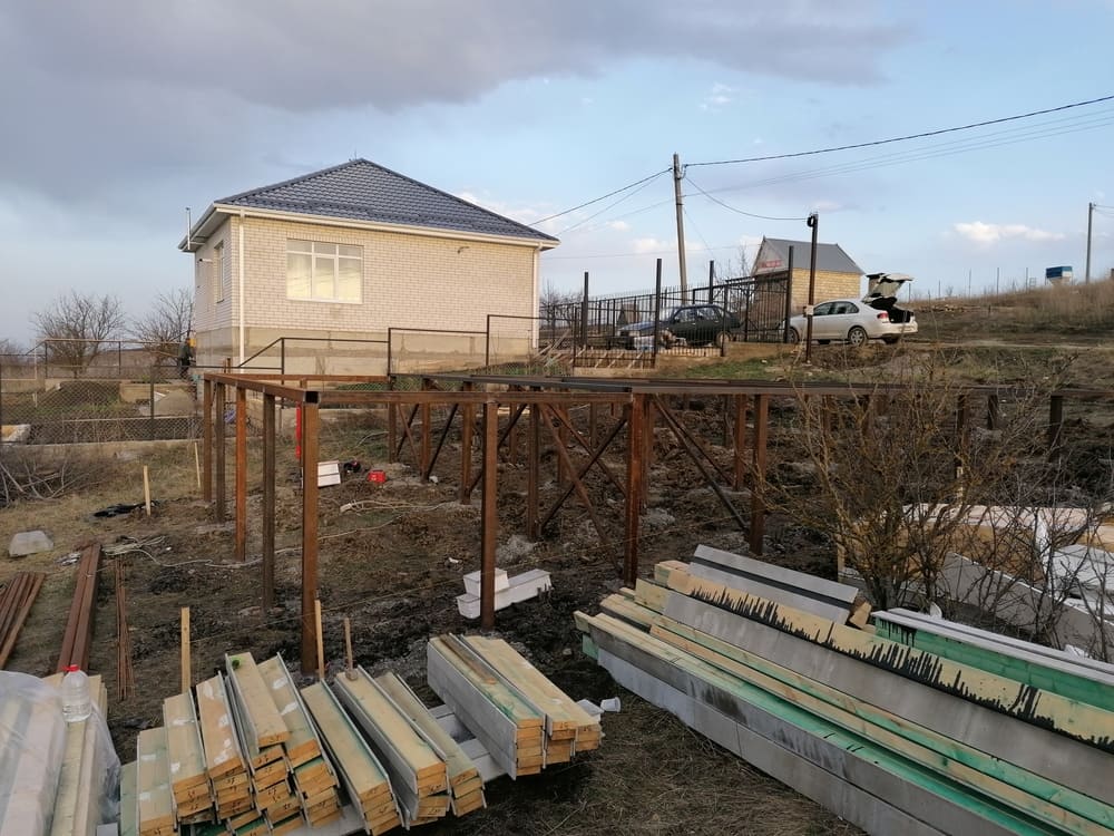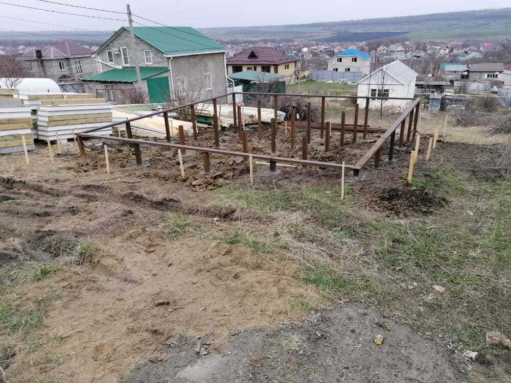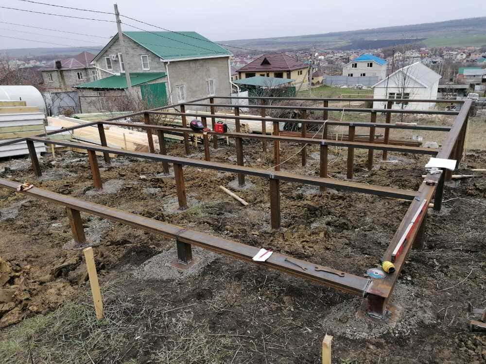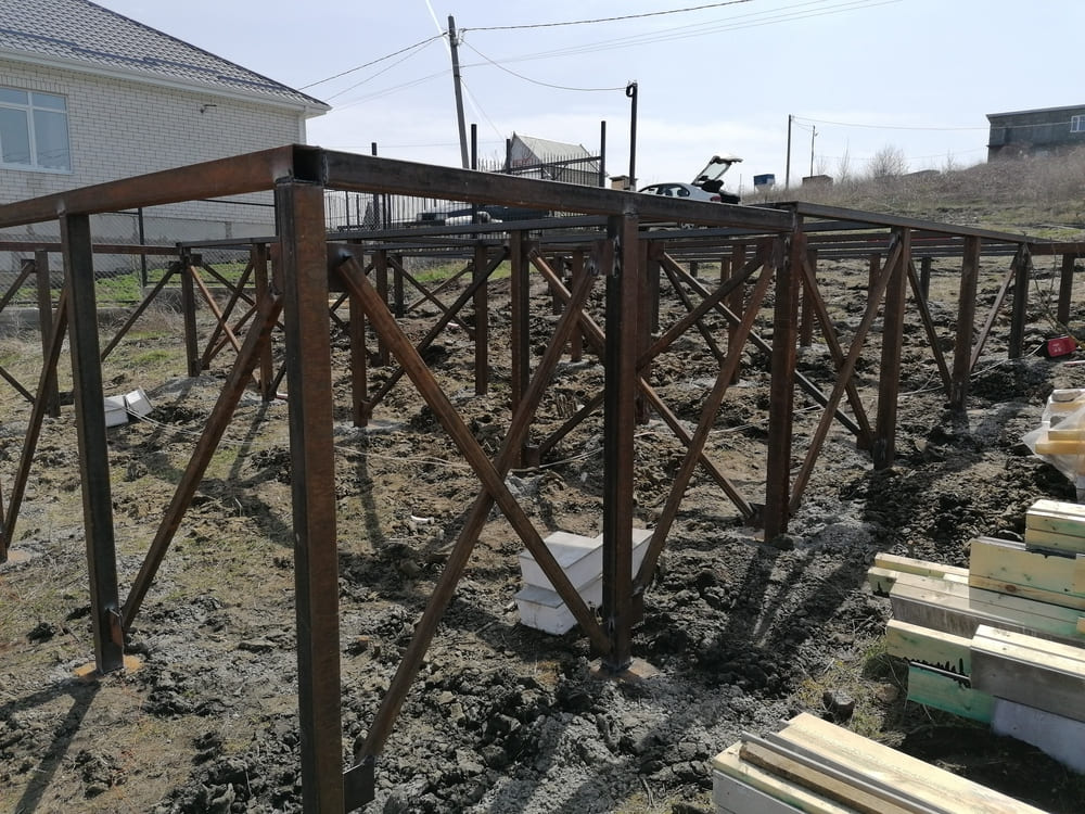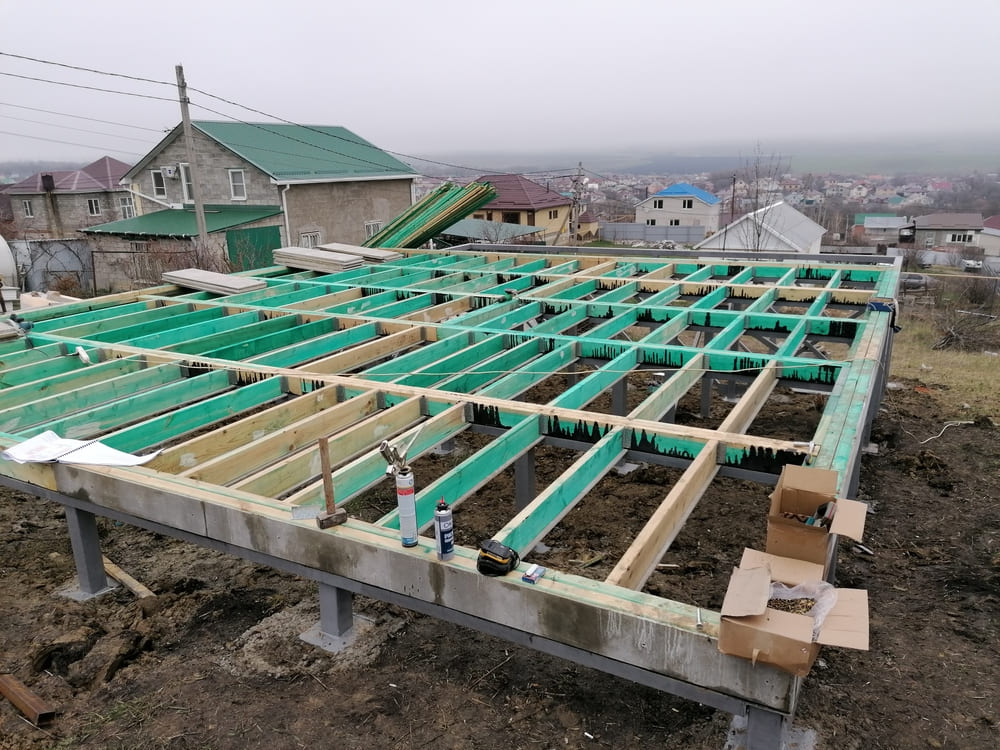 Ростверк изготовлен из калиброванного клееного бруса и защищен снаружи цементно-стружечной плитой