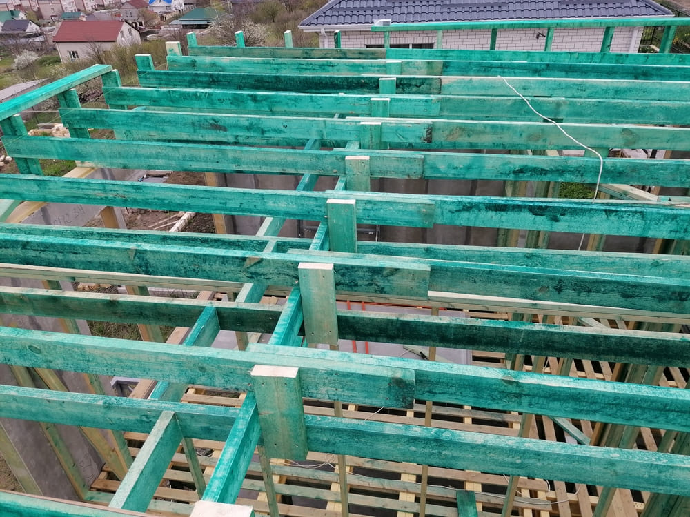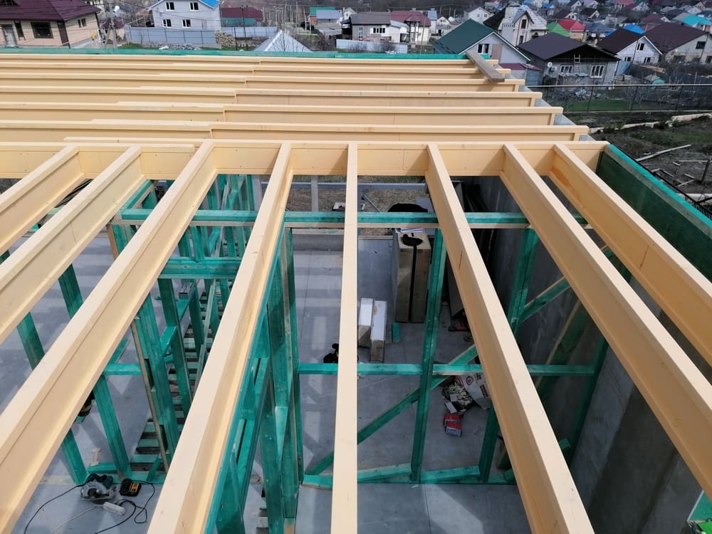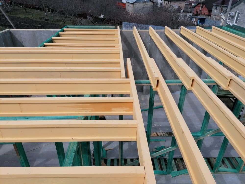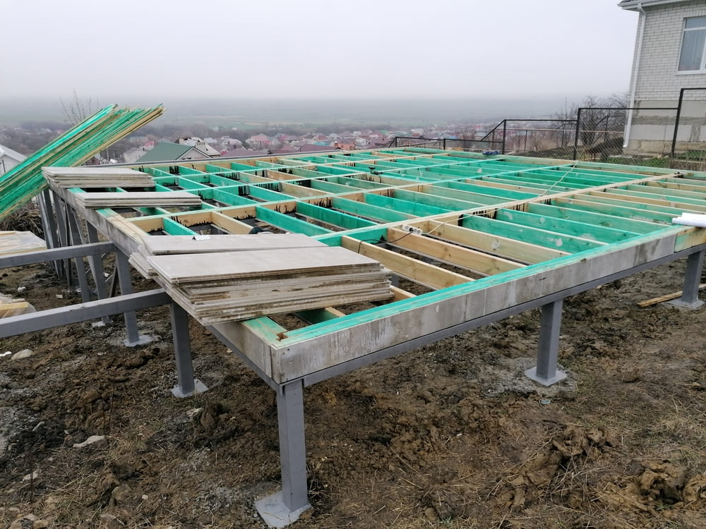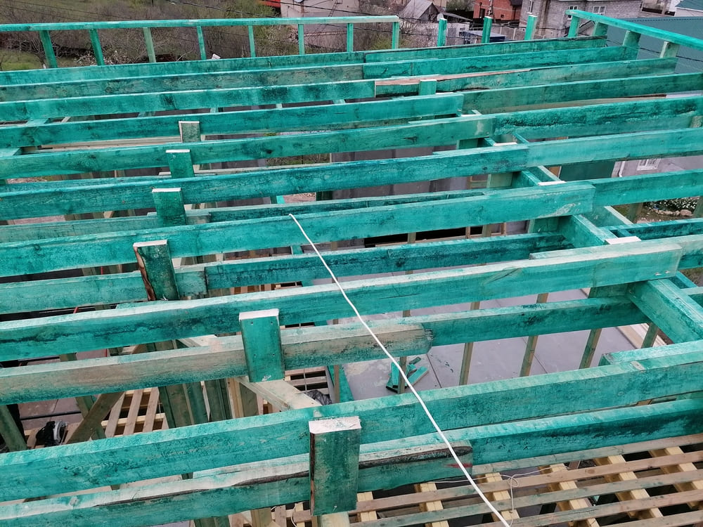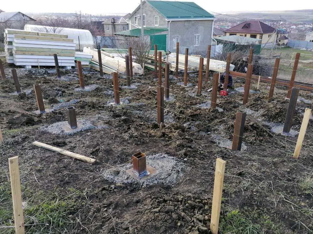 Ростверк изготовлен из калиброванного клееного бруса и защищен снаружи цементно-стружечной плитой