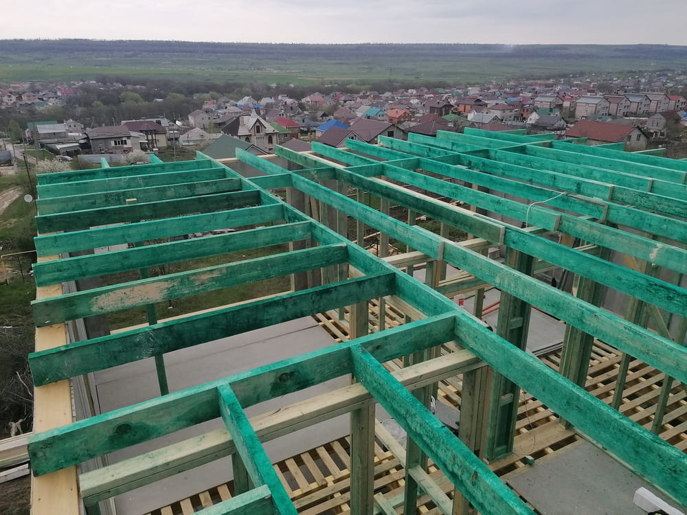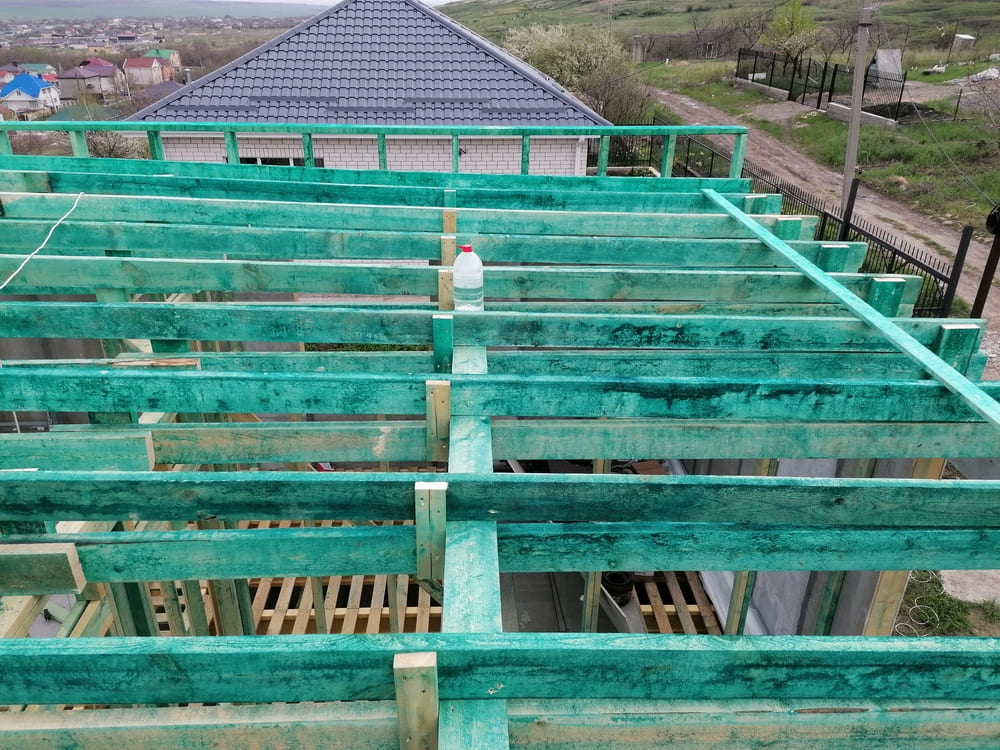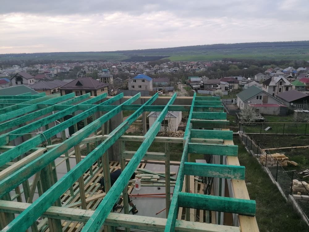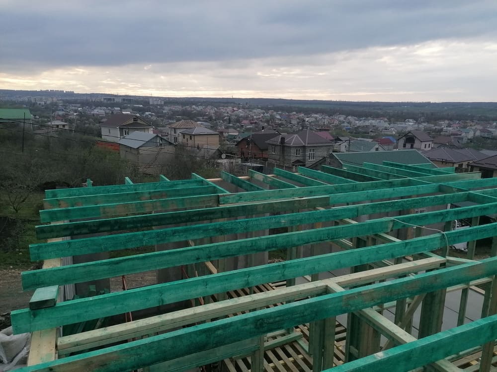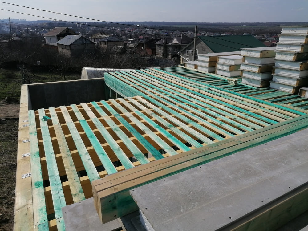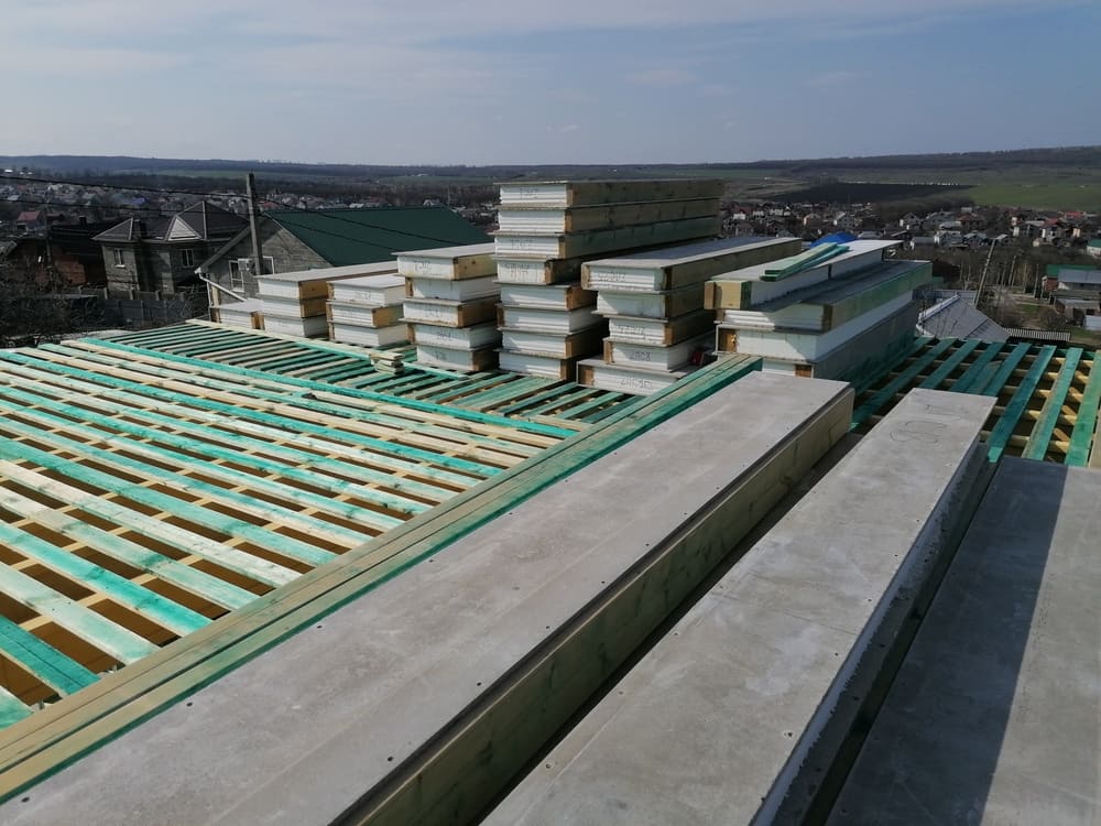 Кровля может быть построена из бруса 150х50мм или SIP панелей. В качестве кровельного материала можно использовать: металлочерепицу, битумную и керамическую черепицу. Также производим кровельные шовные сэндвич-панели.