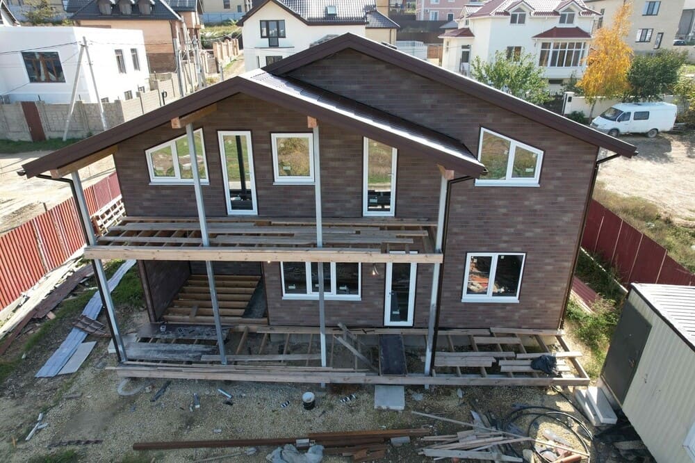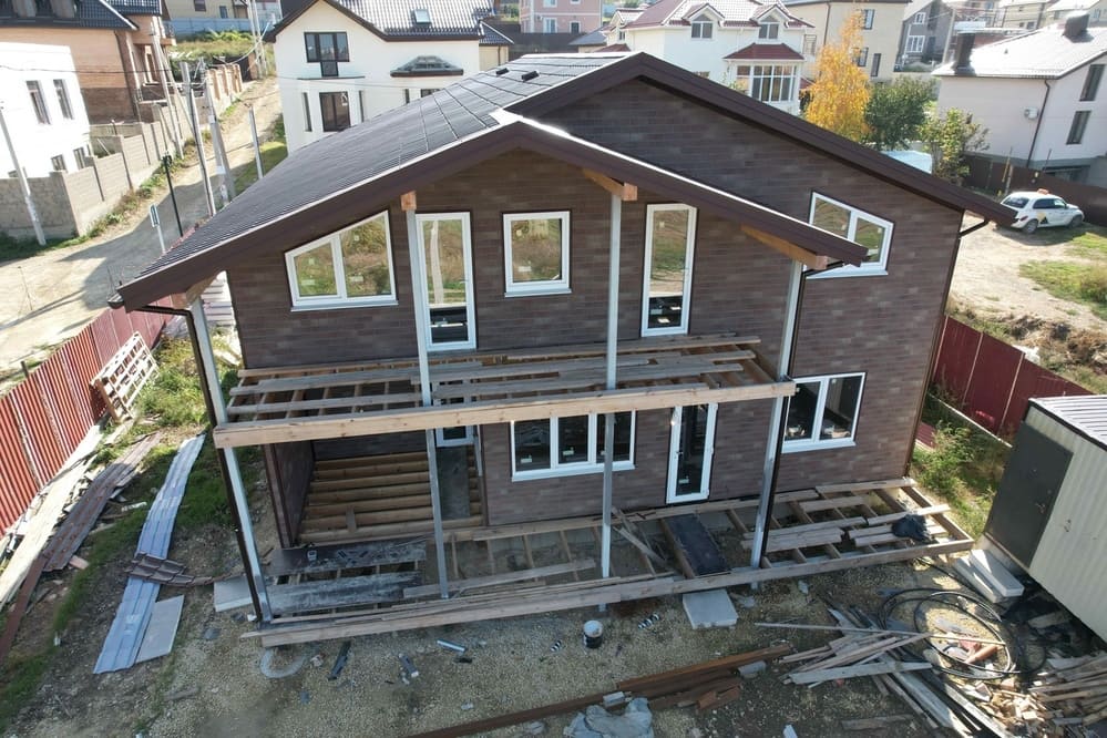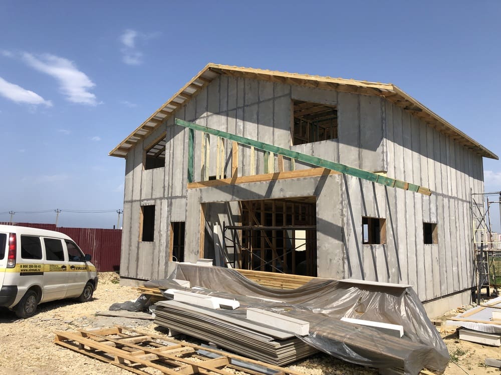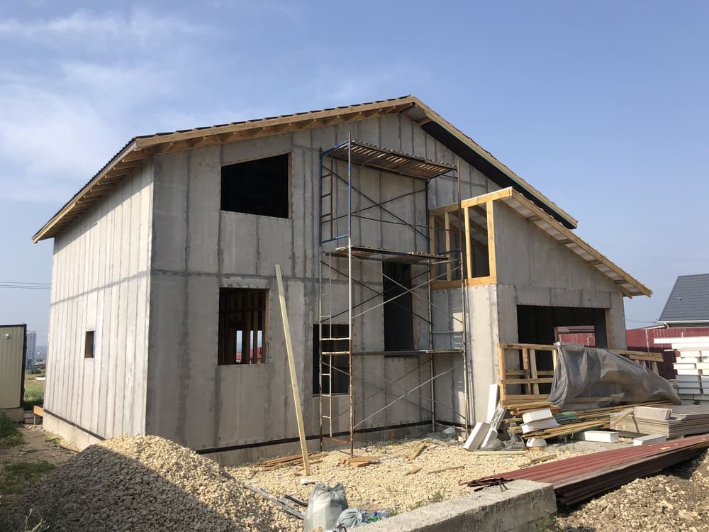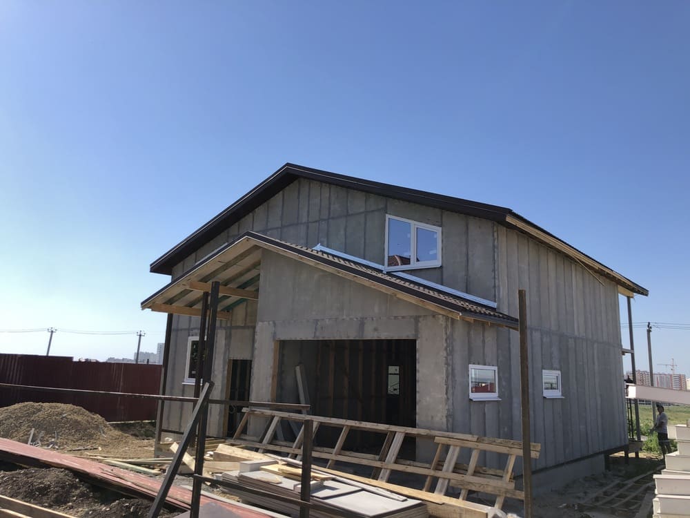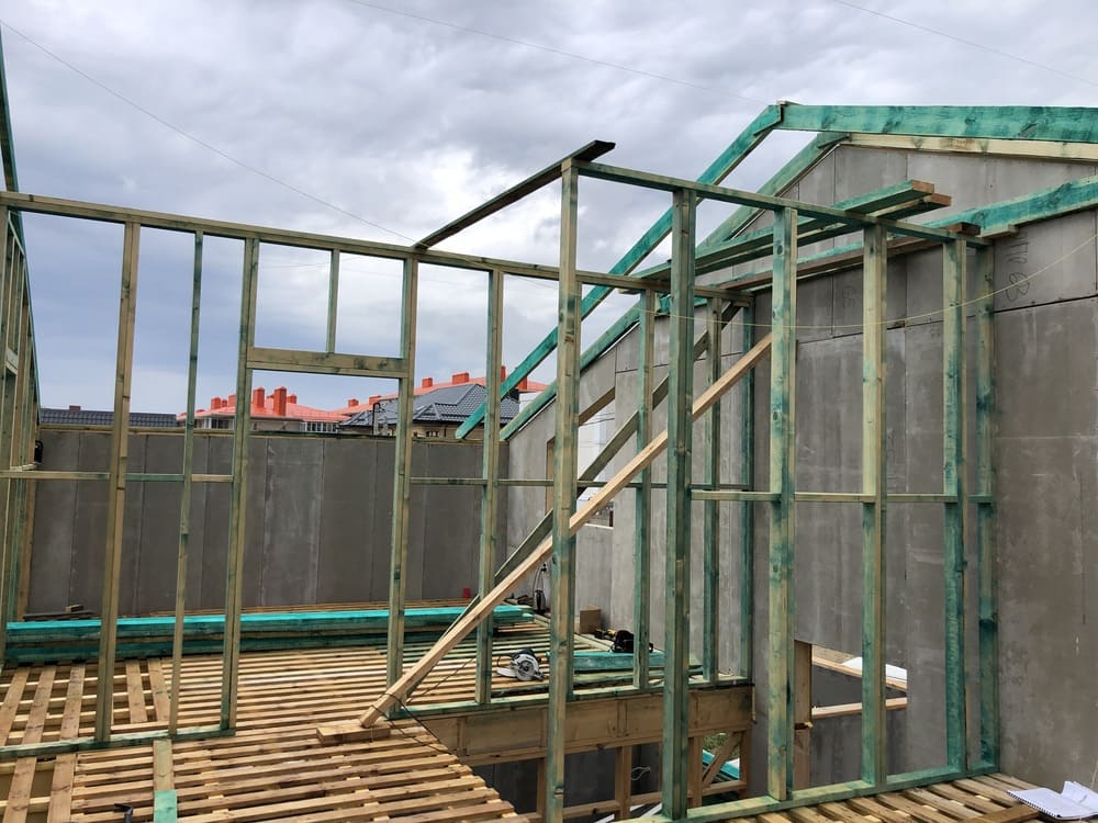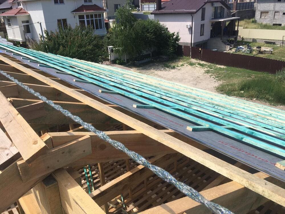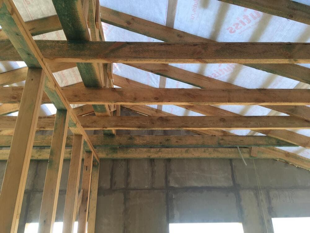 Кровля может быть построена из бруса 150х50мм или SIP панелей. В качестве кровельного материала можно использовать: металлочерепицу, битумную и керамическую черепицу. Также производим кровельные шовные сэндвич-панели.