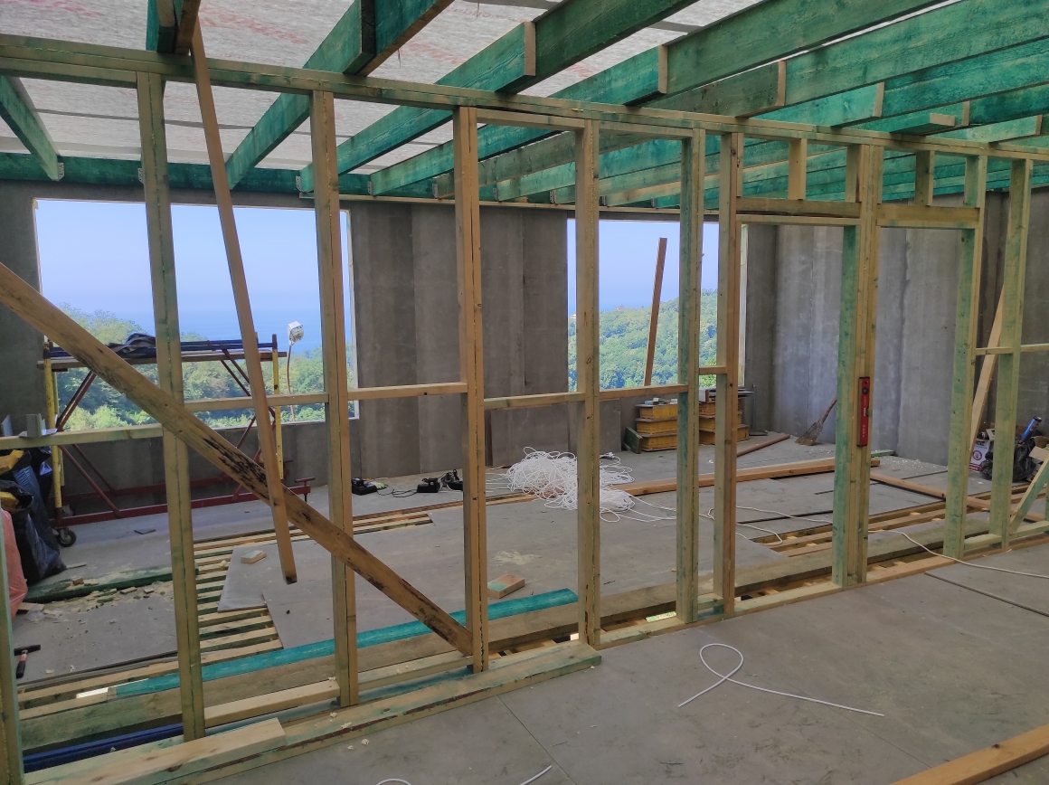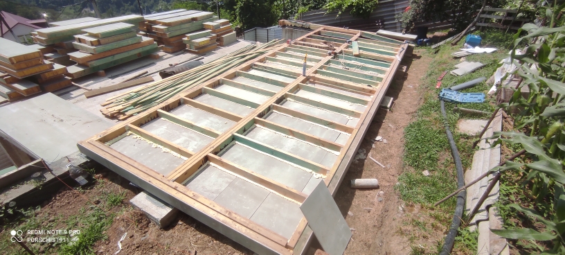 Ростверк изготовлен из калиброванного клееного бруса и защищен снаружи цементно-стружечной плитой