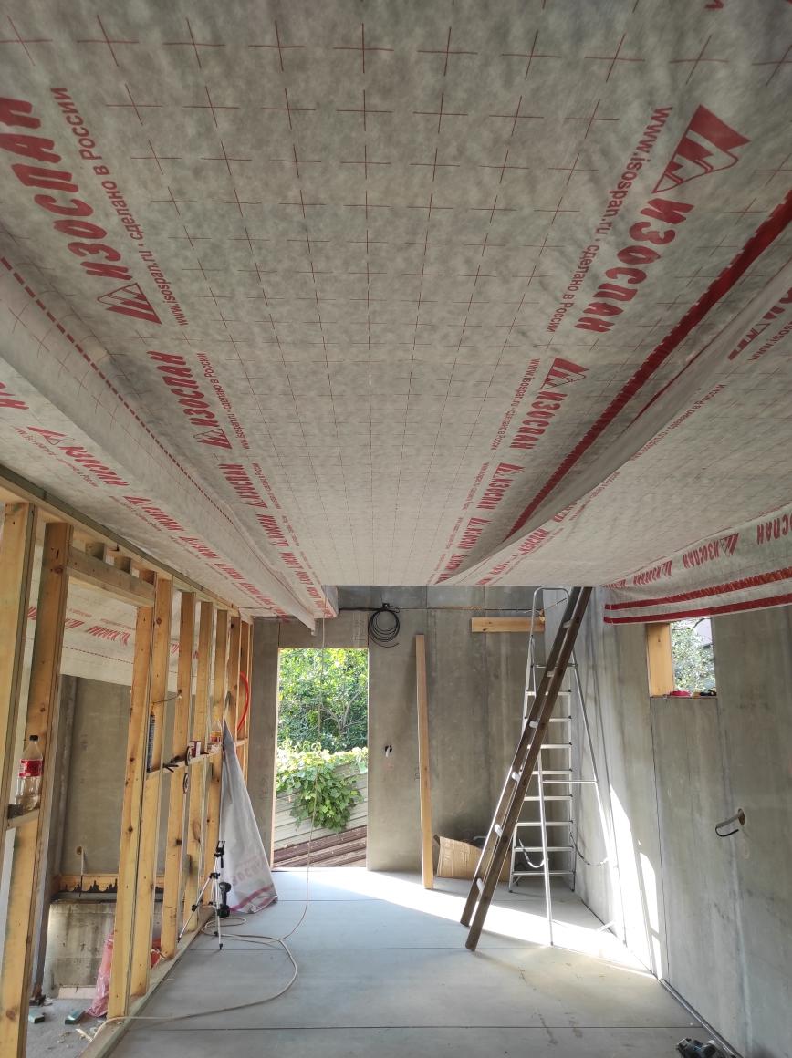 Потолок состоит из двутавровых балок 250 мм, а шаг монтажа балок - 600 мм.