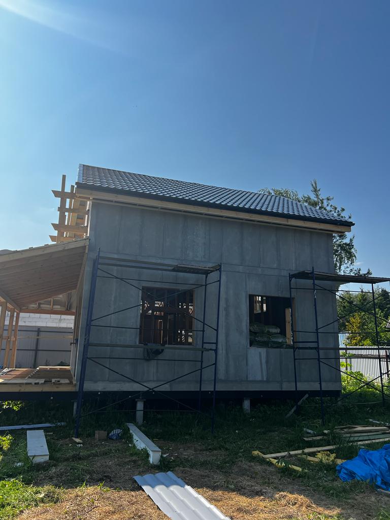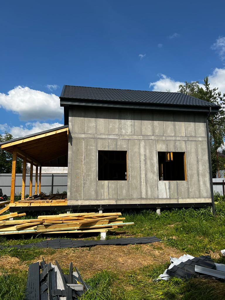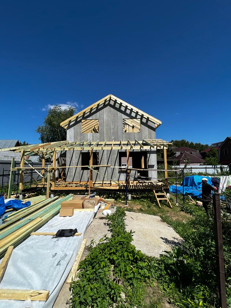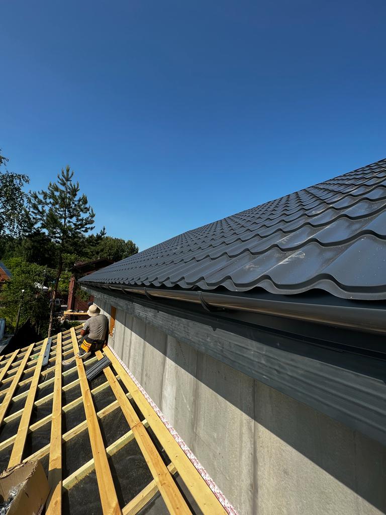 Кровля может быть построена из бруса 150х50мм или SIP панелей. В качестве кровельного материала можно использовать: металлочерепицу, битумную и керамическую черепицу. Также производим кровельные шовные сэндвич-панели.