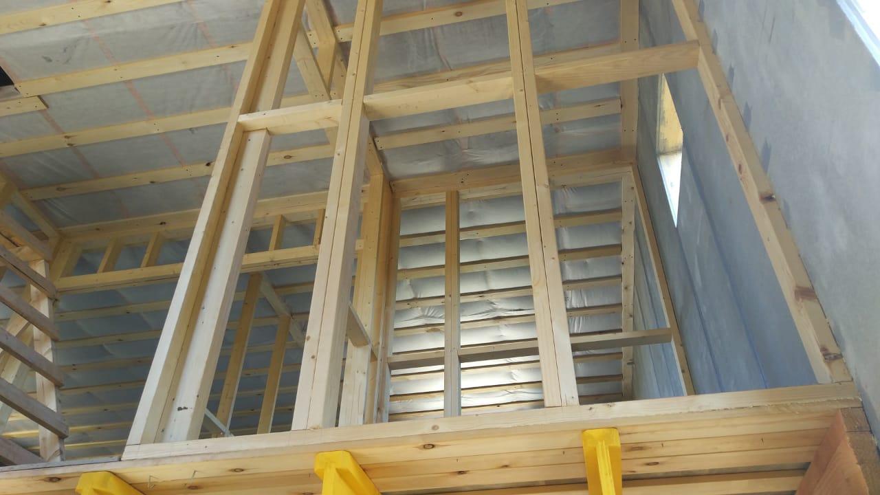 Ростверк изготовлен из калиброванного клееного бруса и защищен снаружи цементно-стружечной плитой