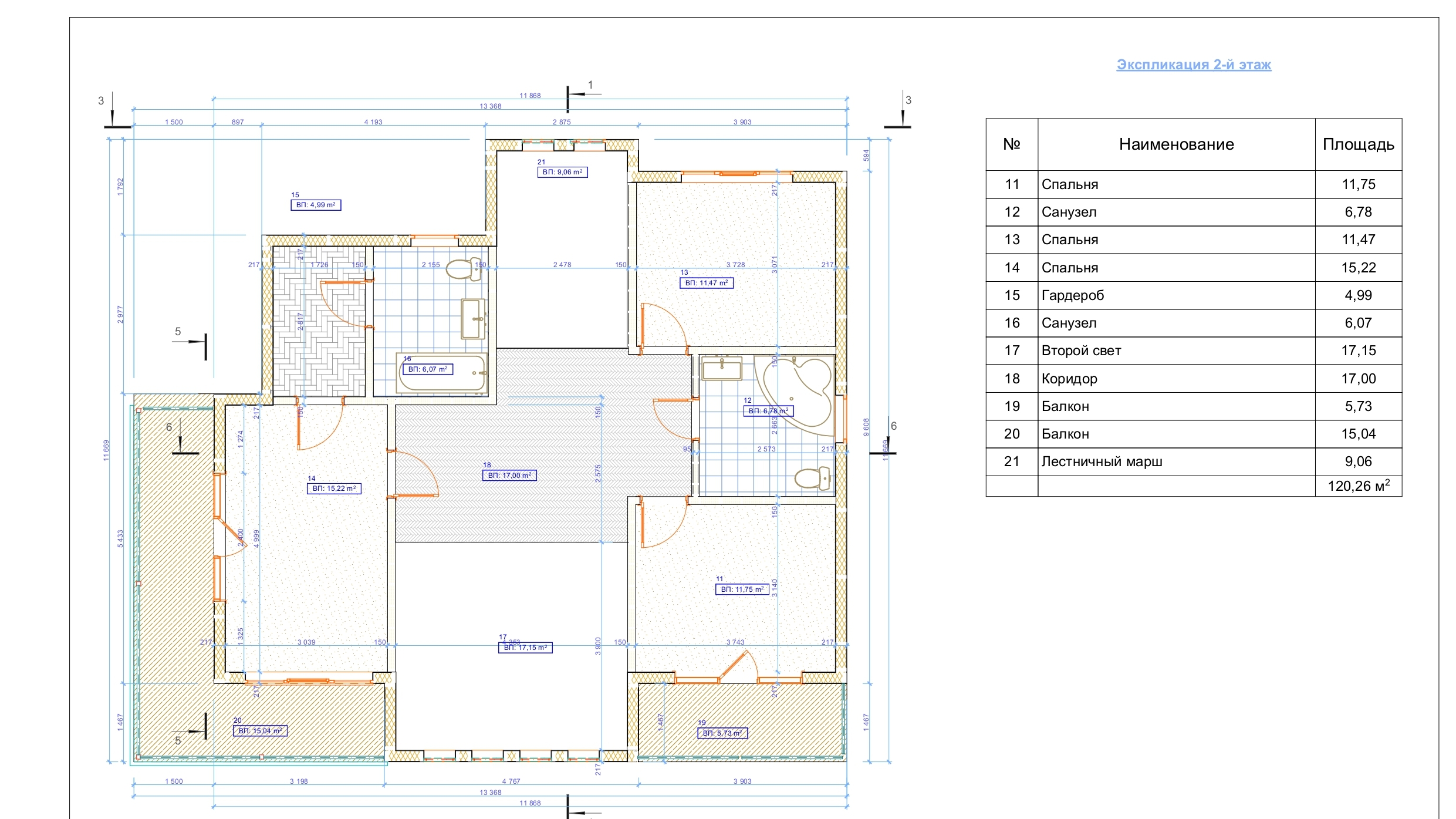 Площадь застройки террас: 61 м2