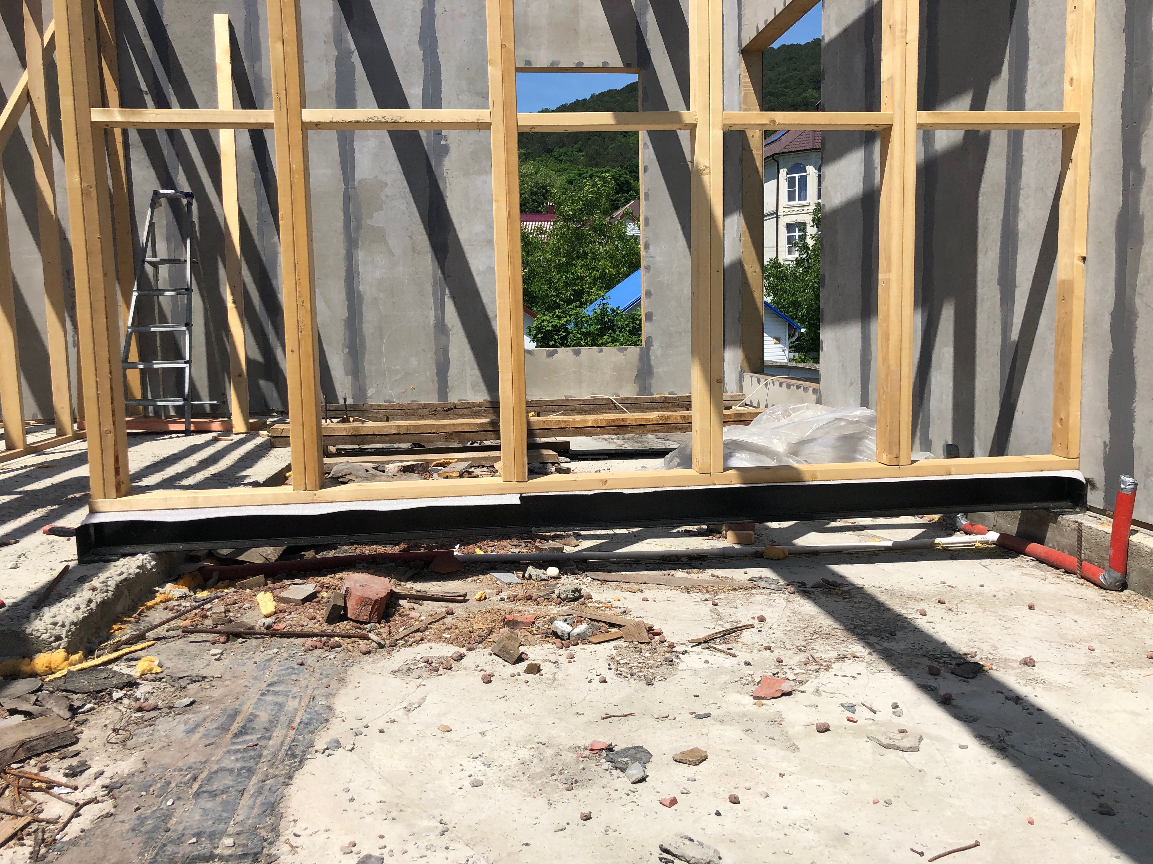 Ростверк изготовлен из калиброванного клееного бруса и защищен снаружи цементно-стружечной плитой