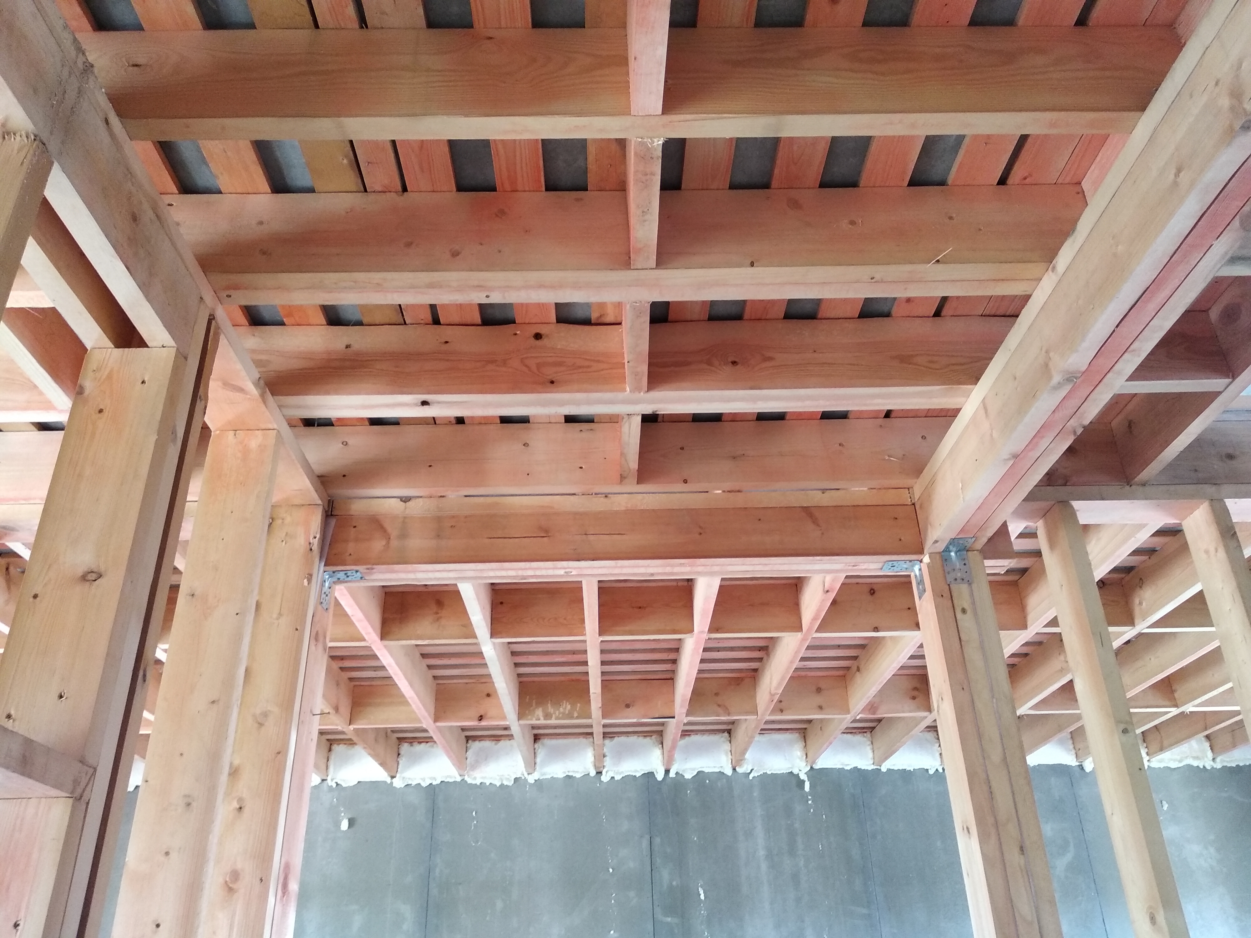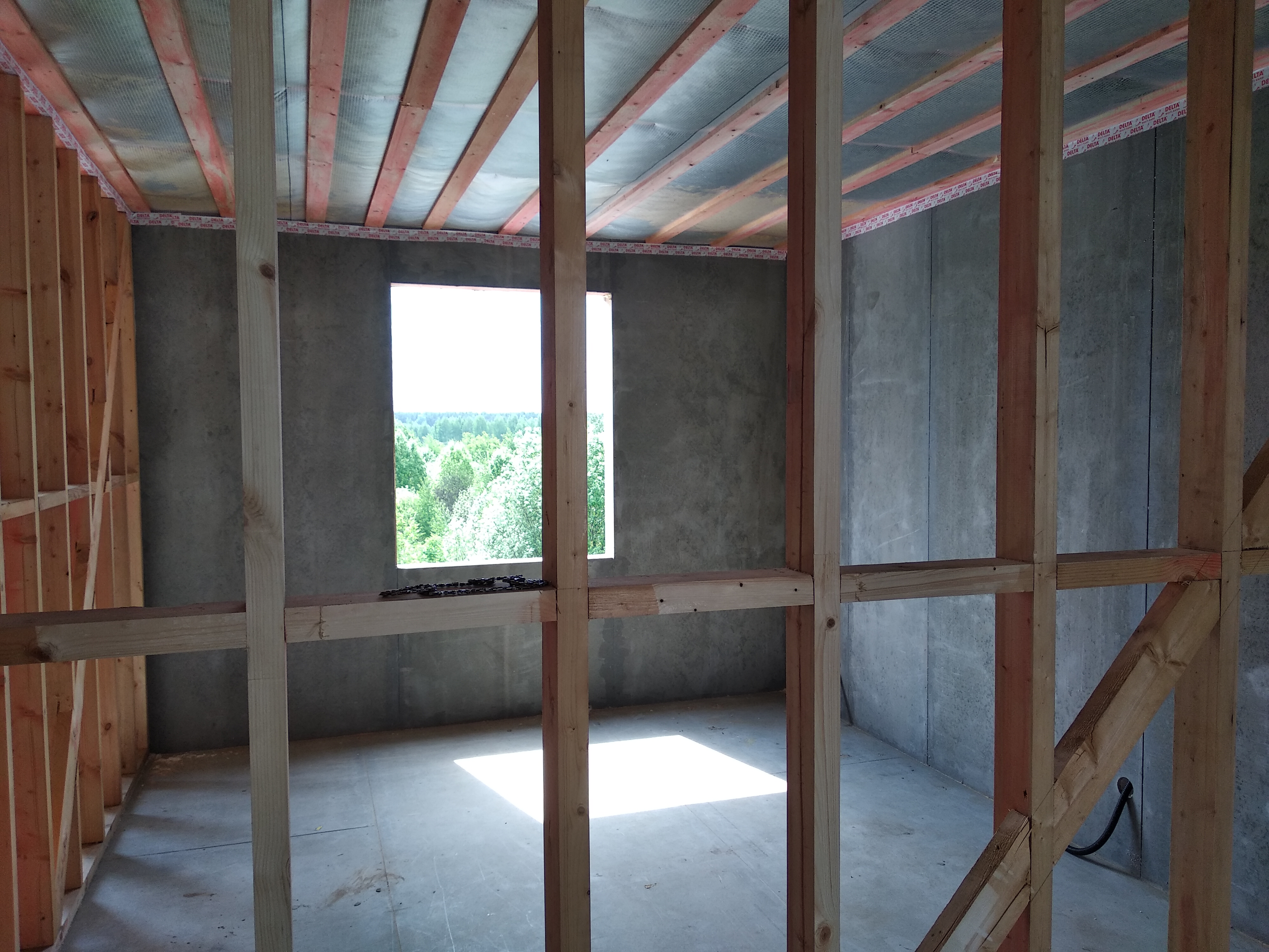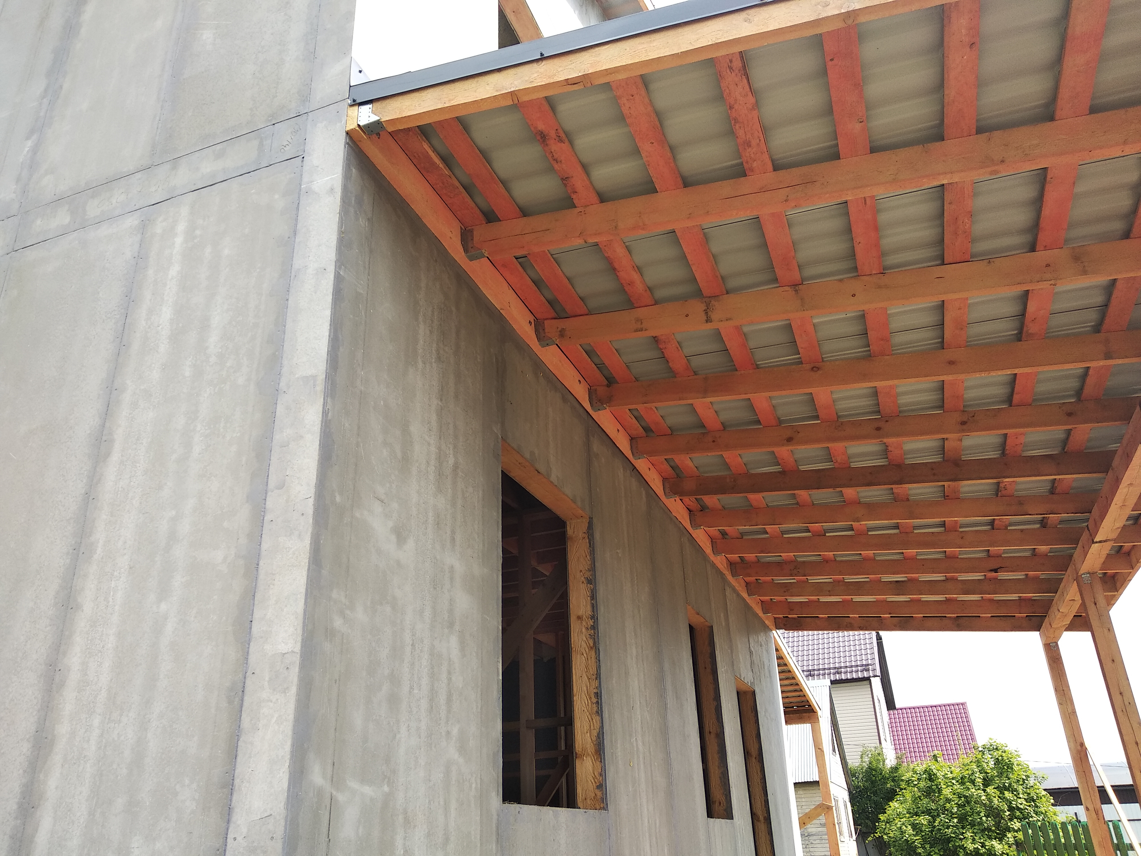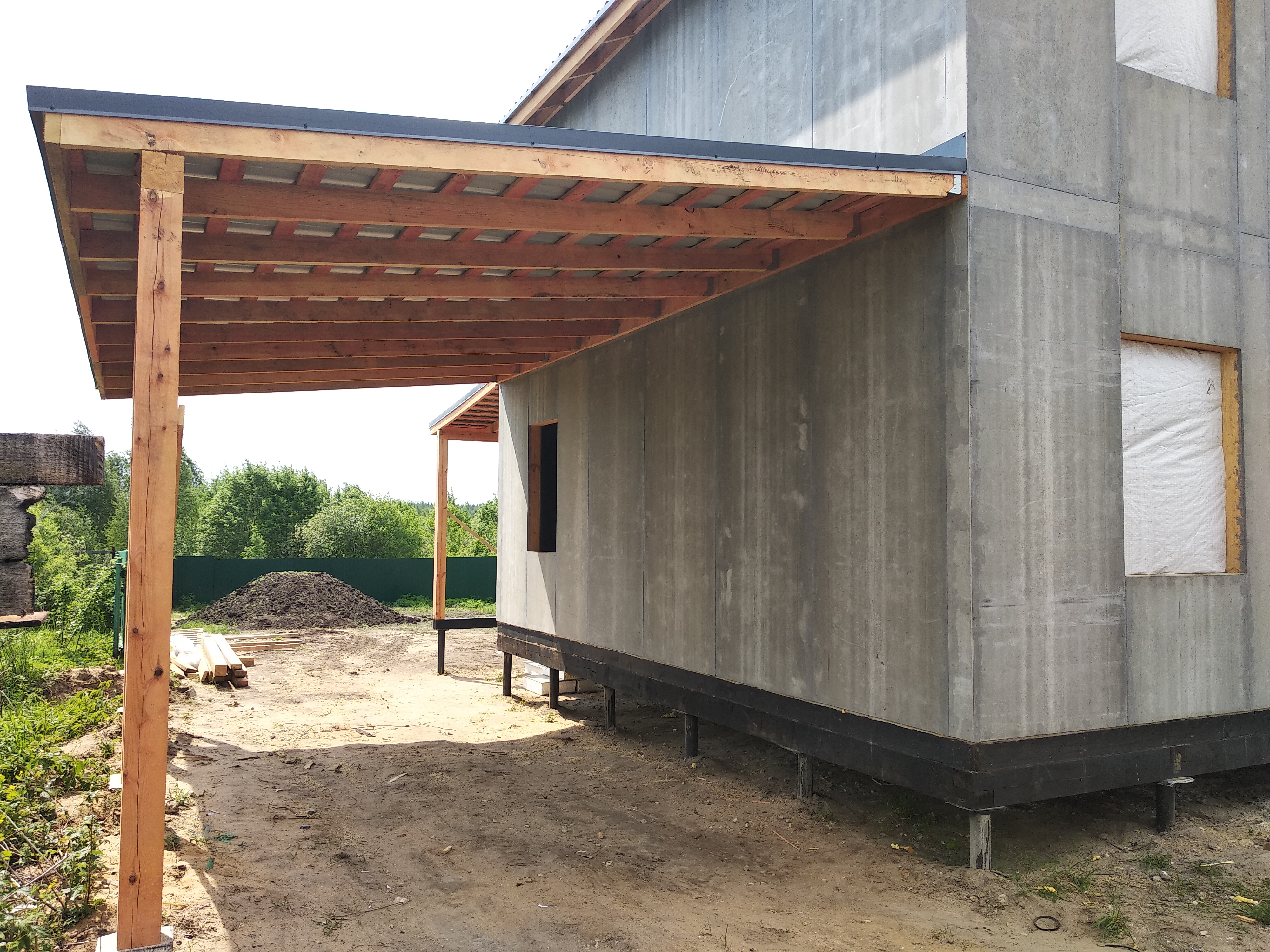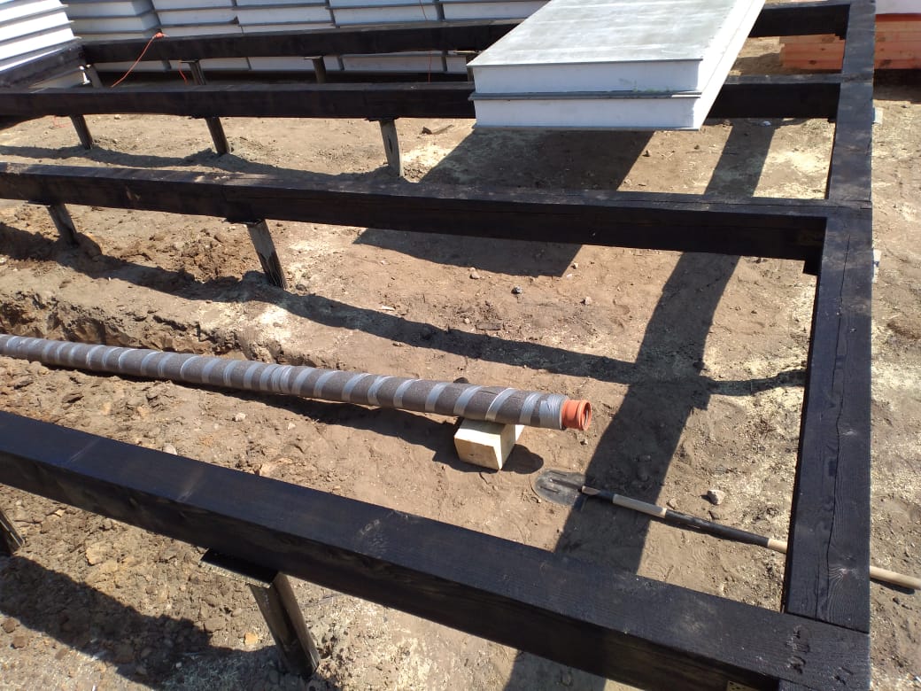 Ростверк изготовлен из калиброванного клееного бруса и защищен снаружи цементно-стружечной плитой