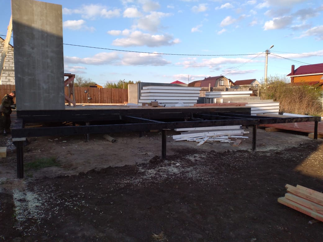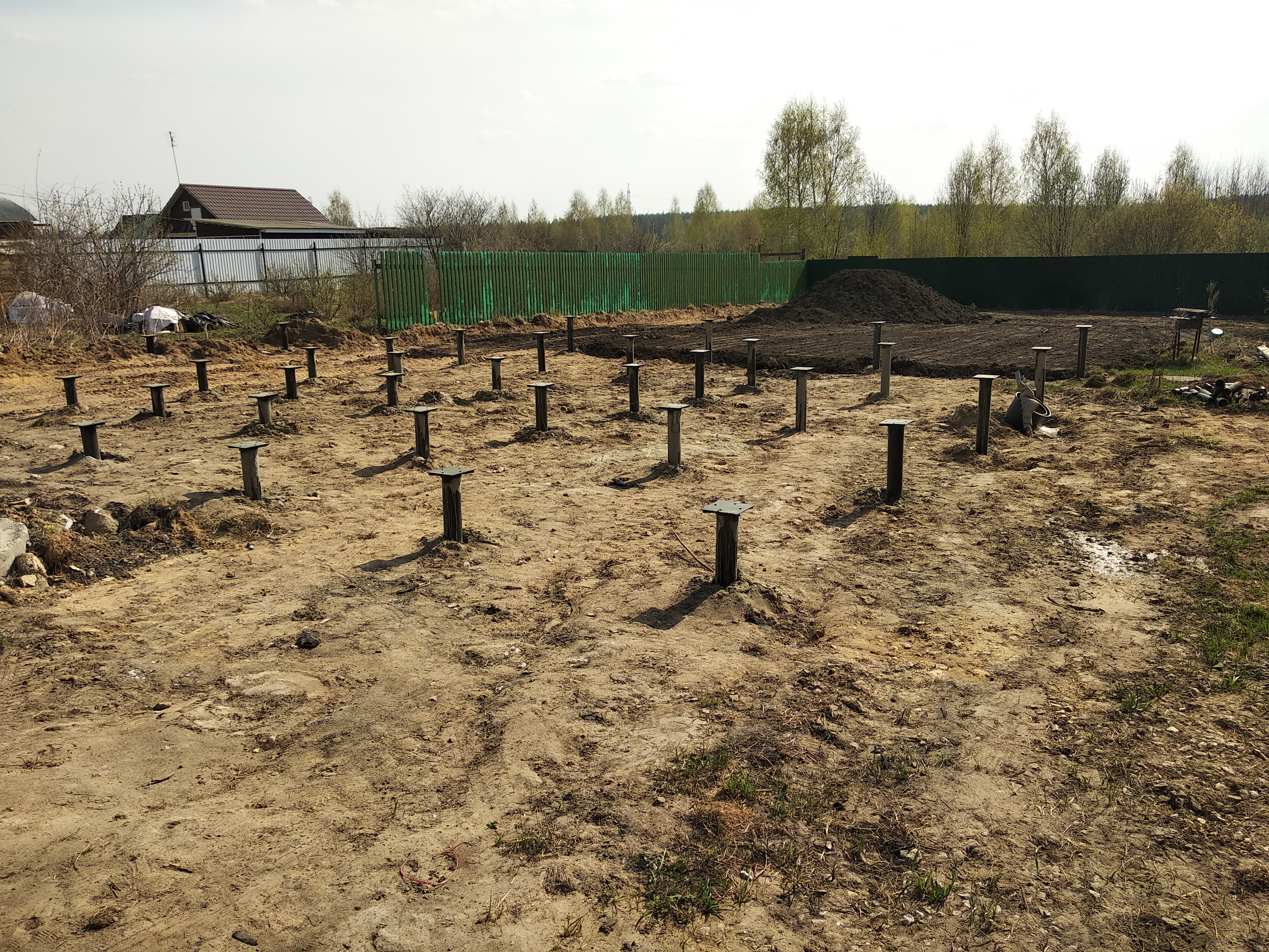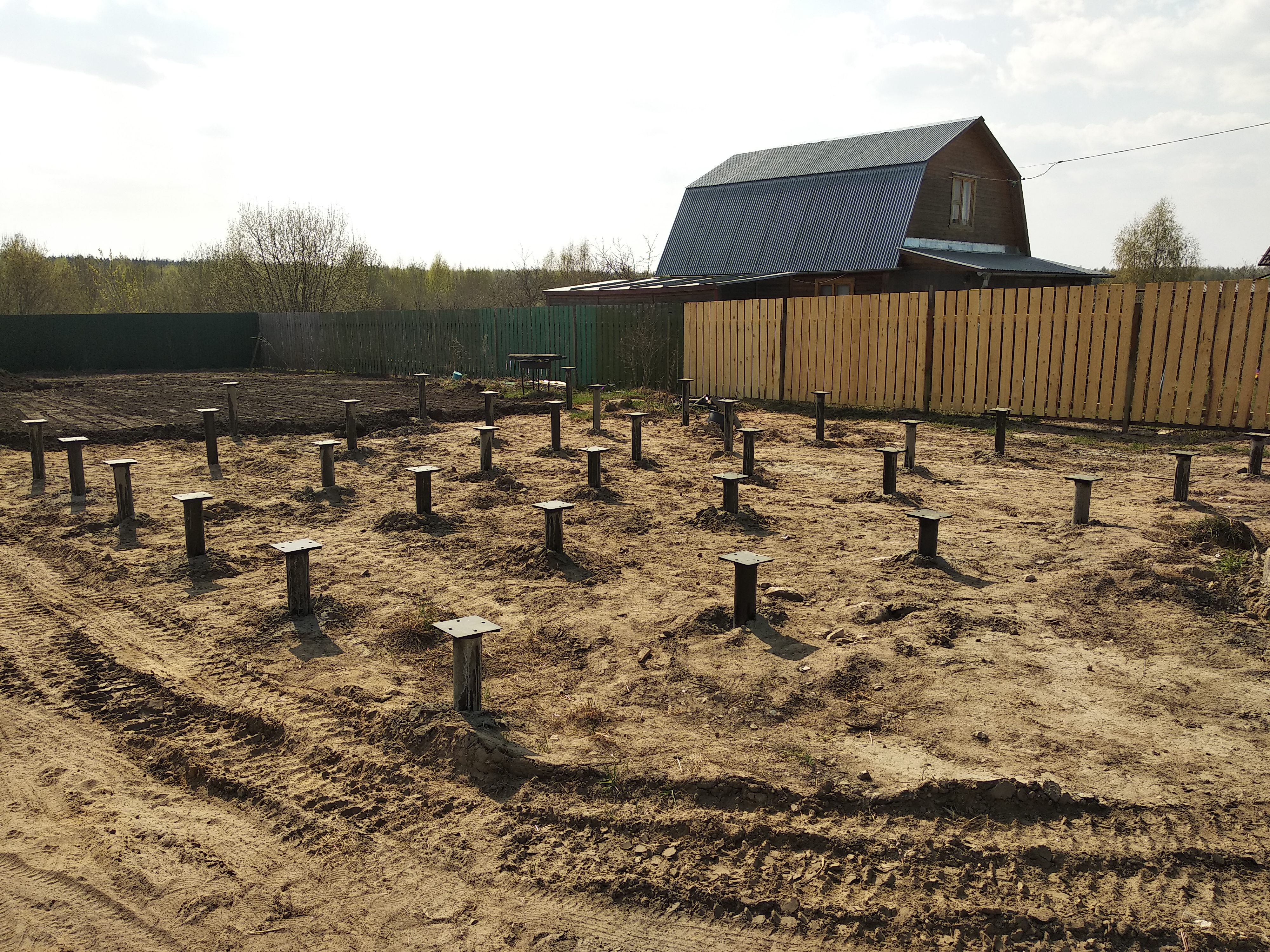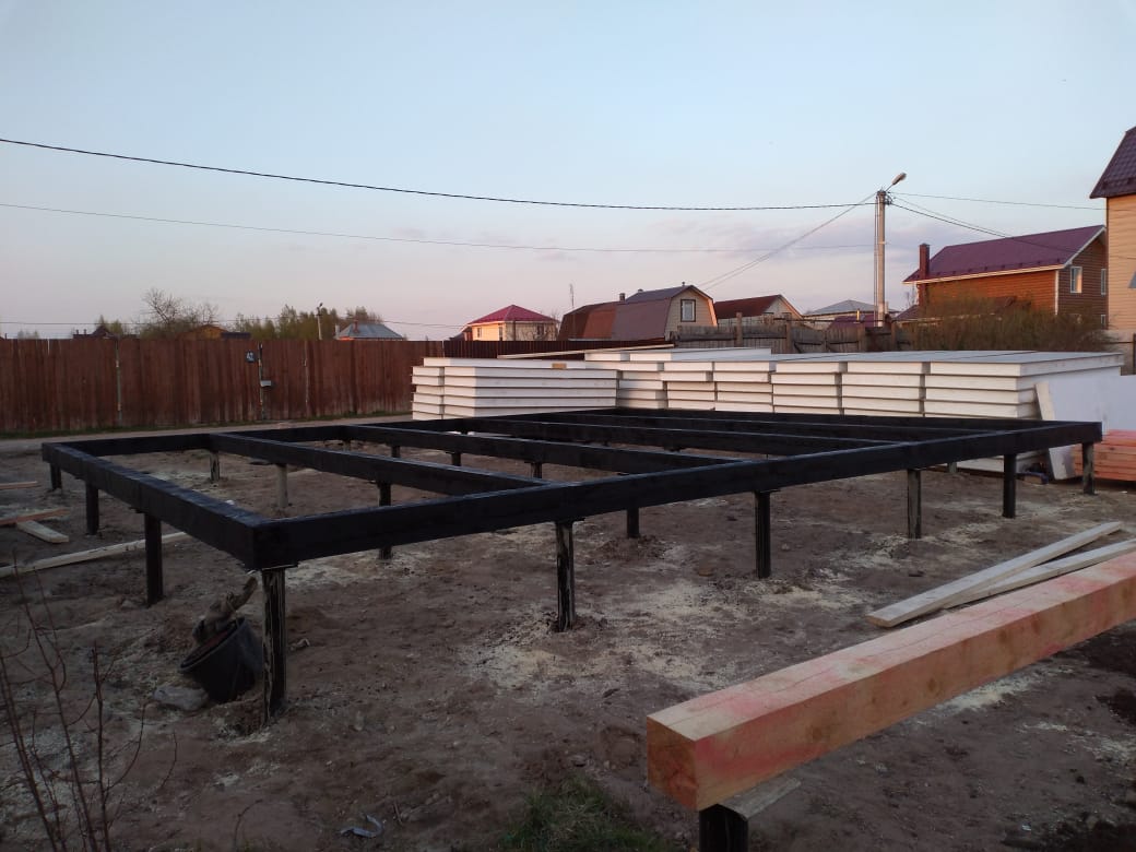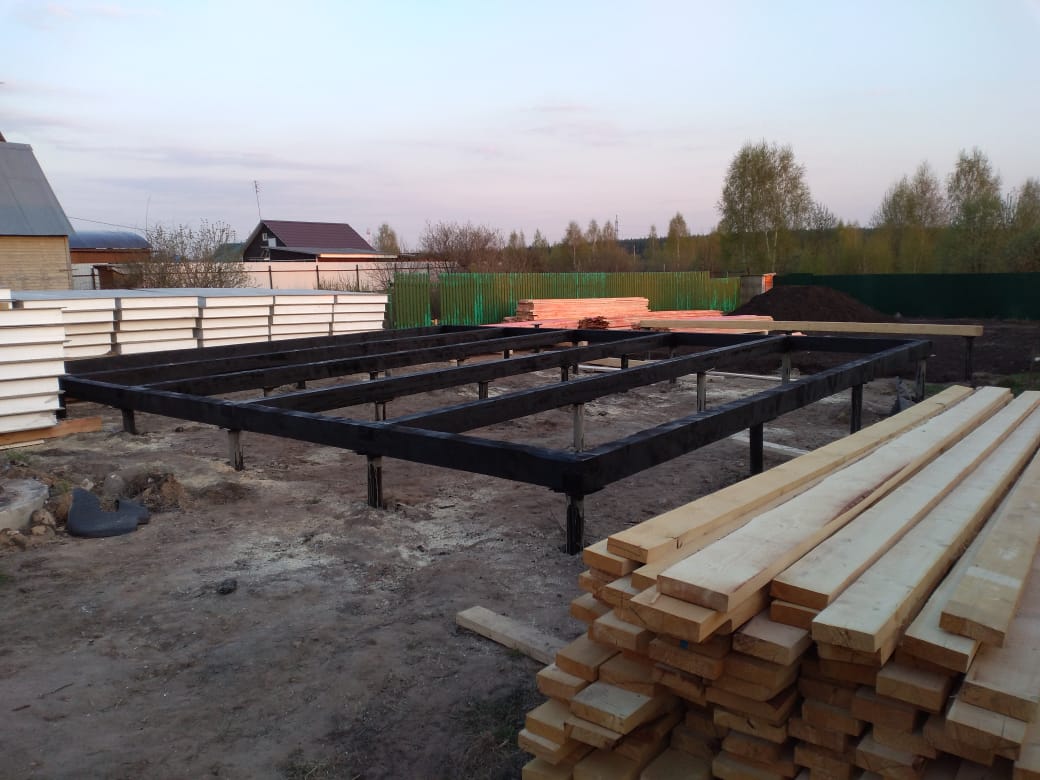 Фундамент – деревянный ростверк на металлических винтовых сваях