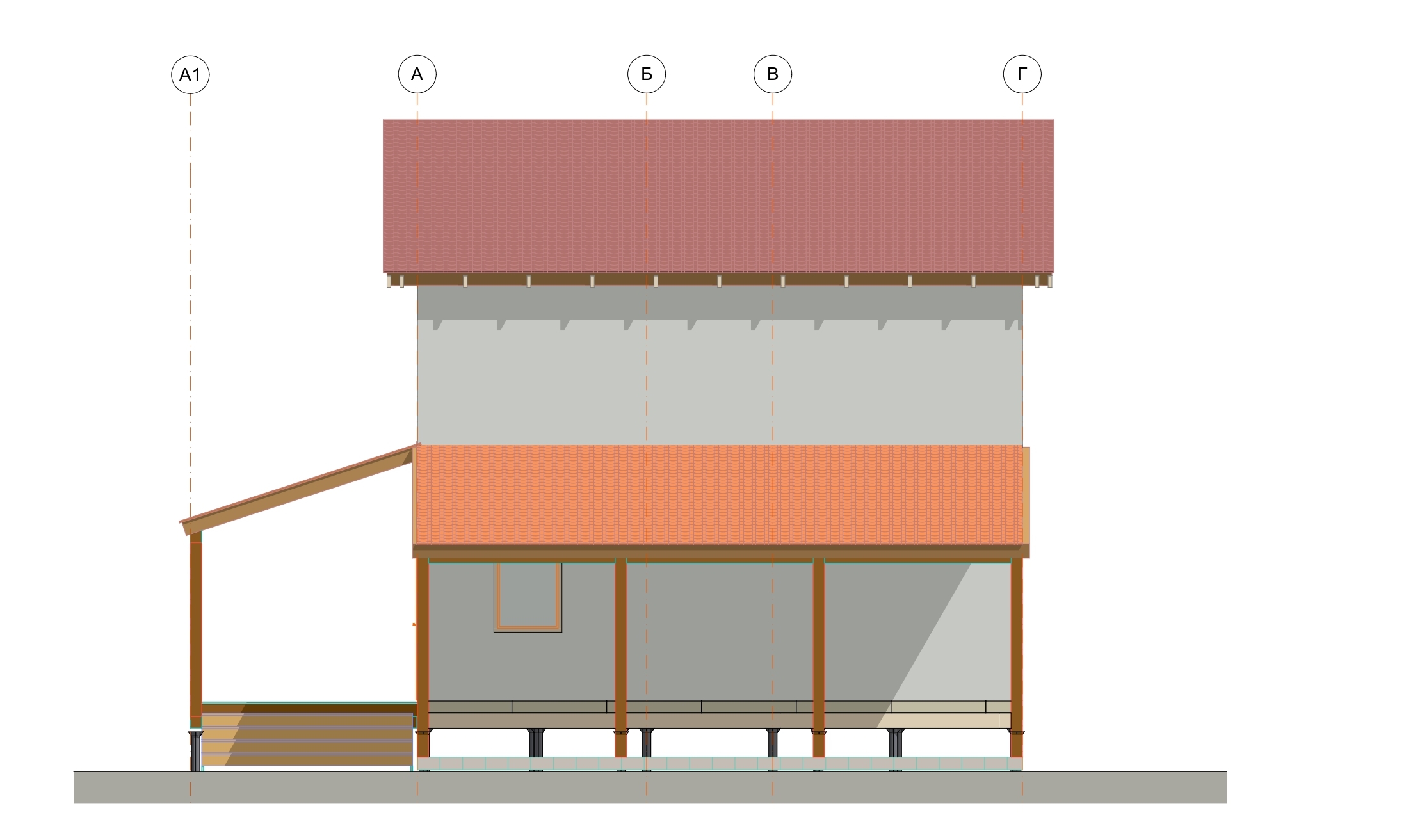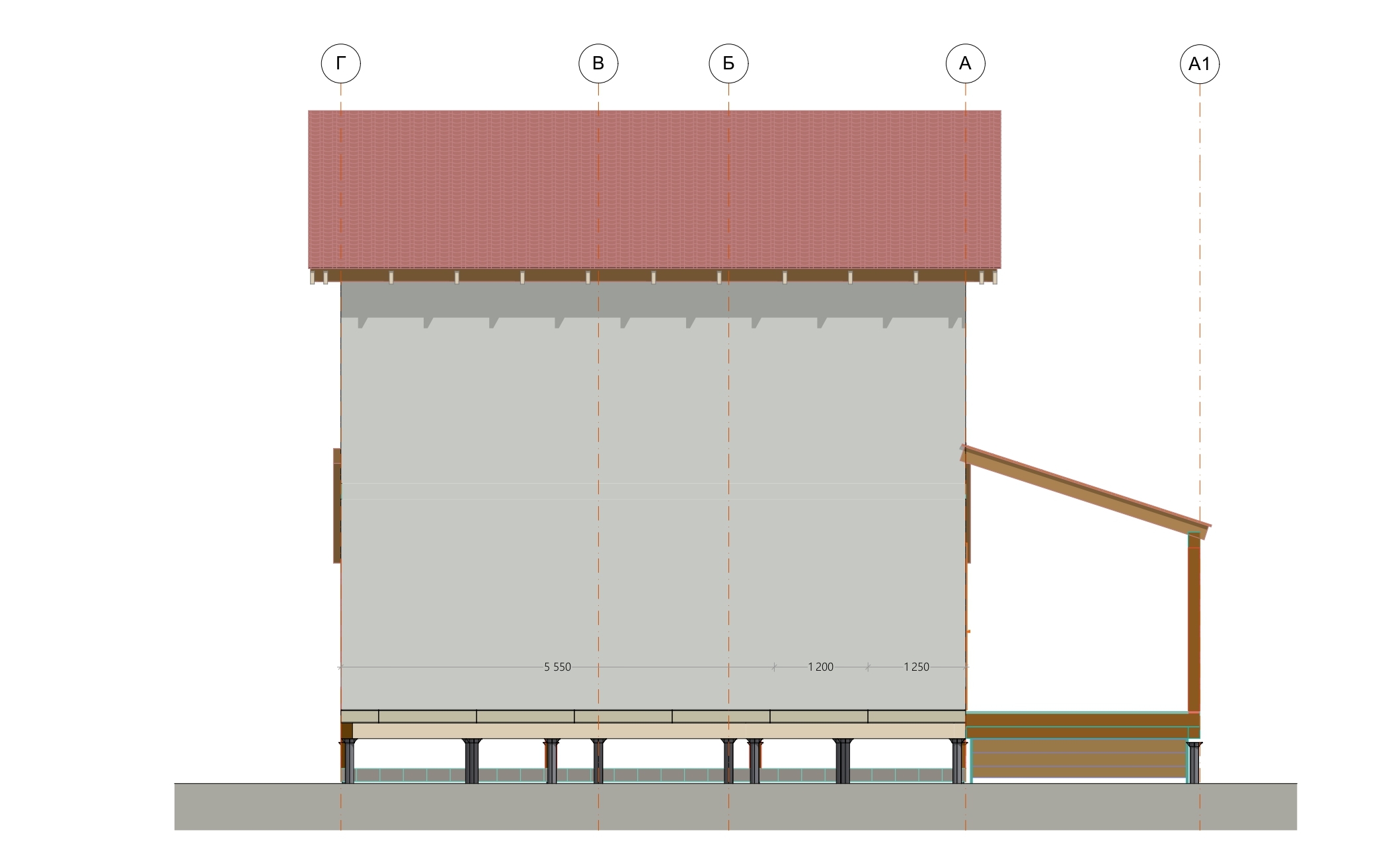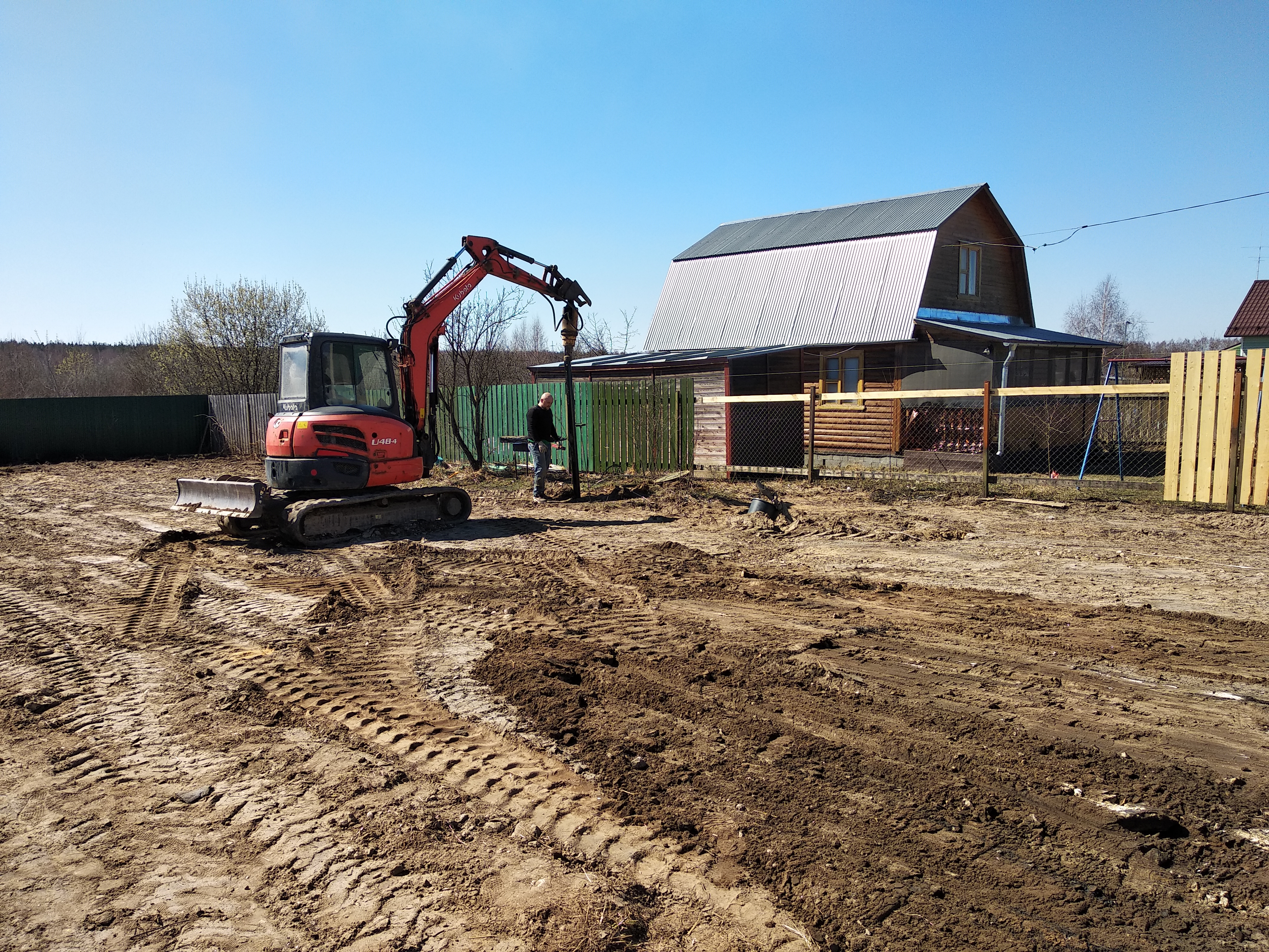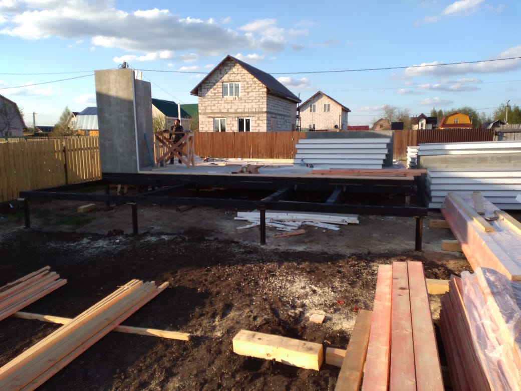 Фундамент – деревянный ростверк на металлических винтовых сваях