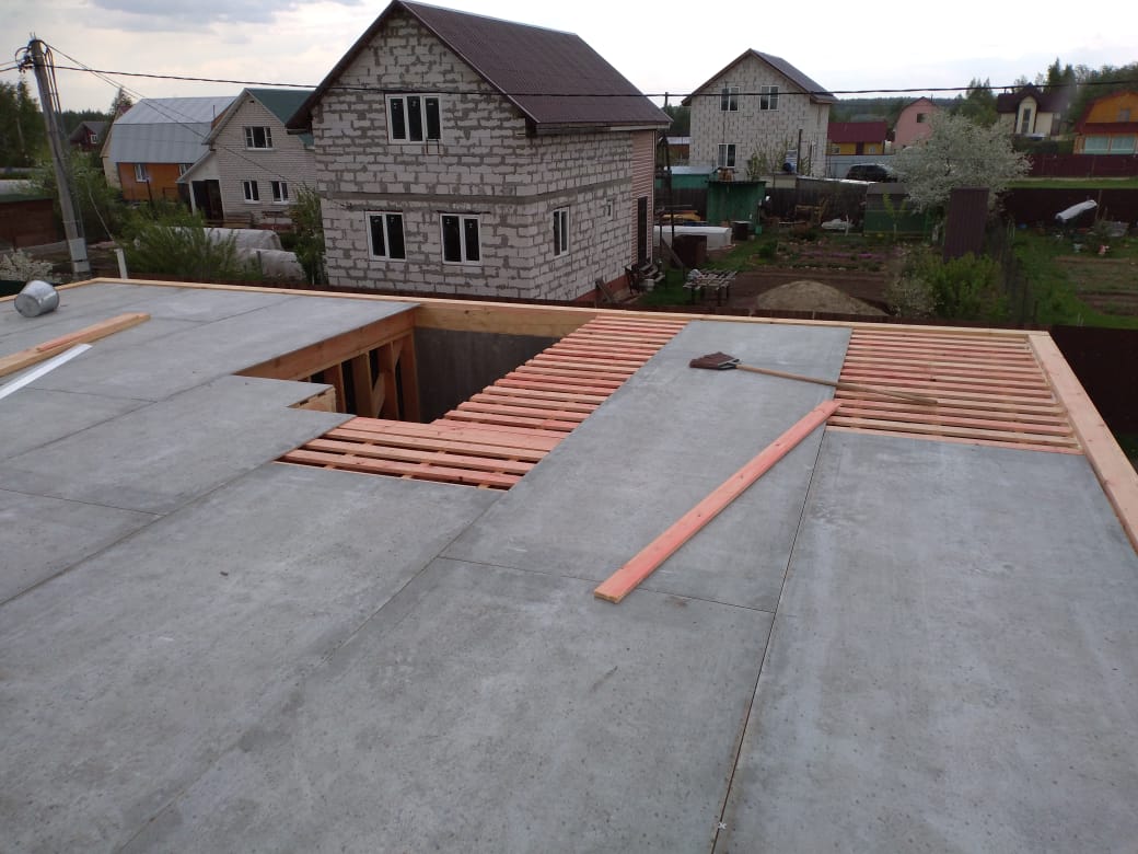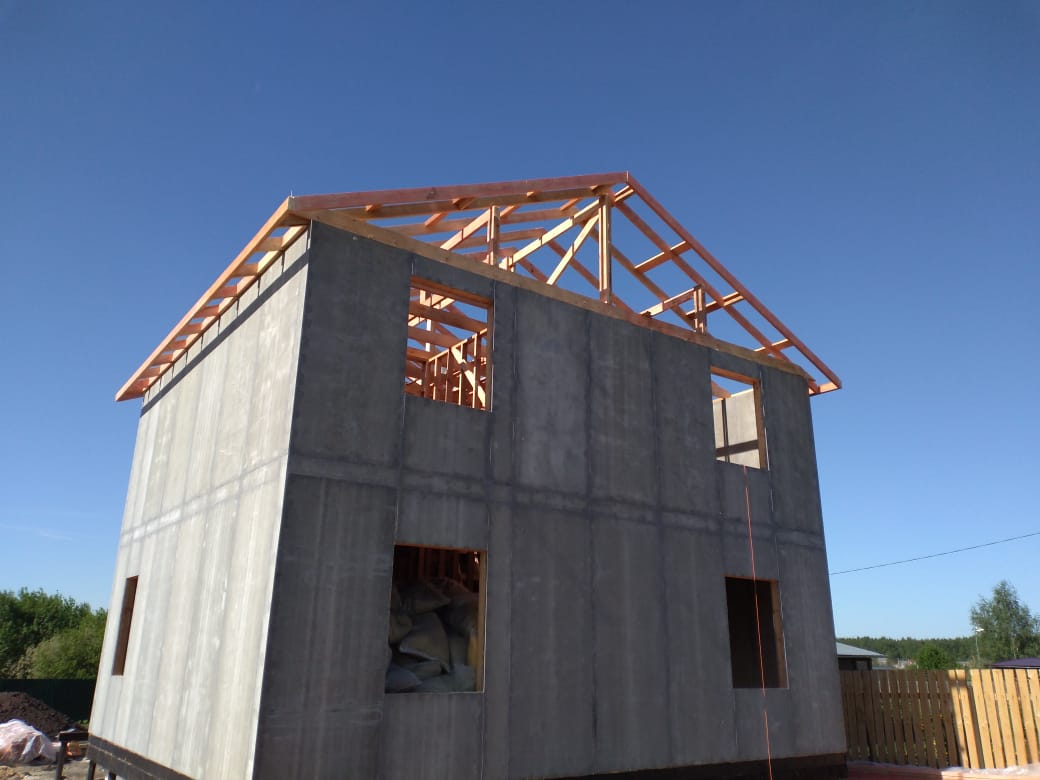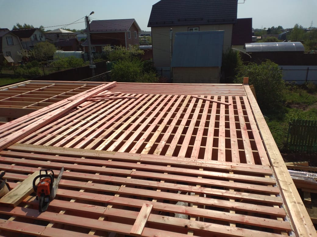 Кровля может быть построена из бруса 150х50мм или SIP панелей. В качестве кровельного материала можно использовать: металлочерепицу, битумную и керамическую черепицу. Также производим кровельные шовные сэндвич-панели.