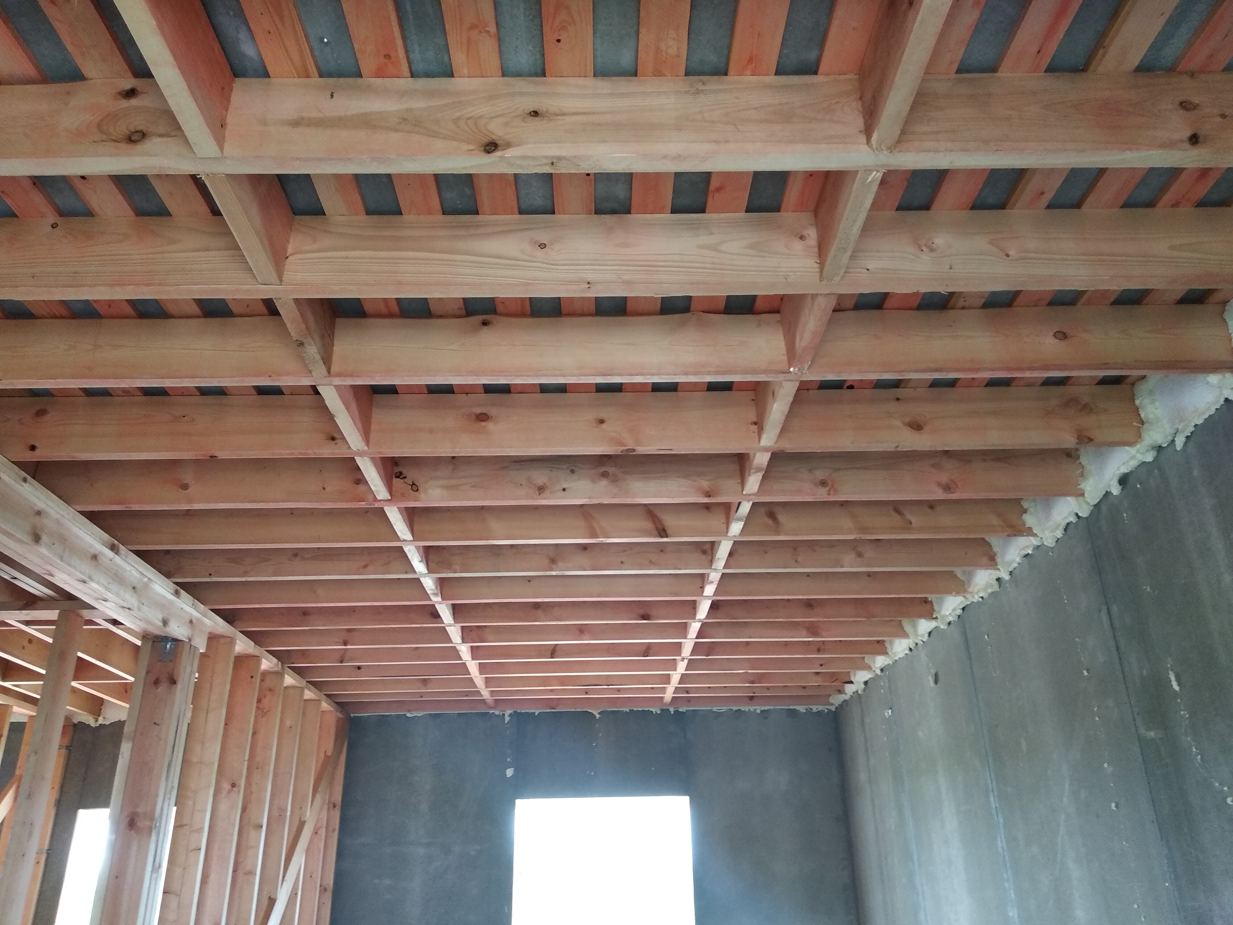 Потолок состоит из двутавровых балок 250 мм, а шаг монтажа балок - 600 мм.