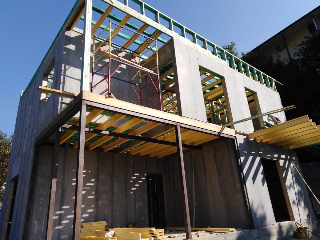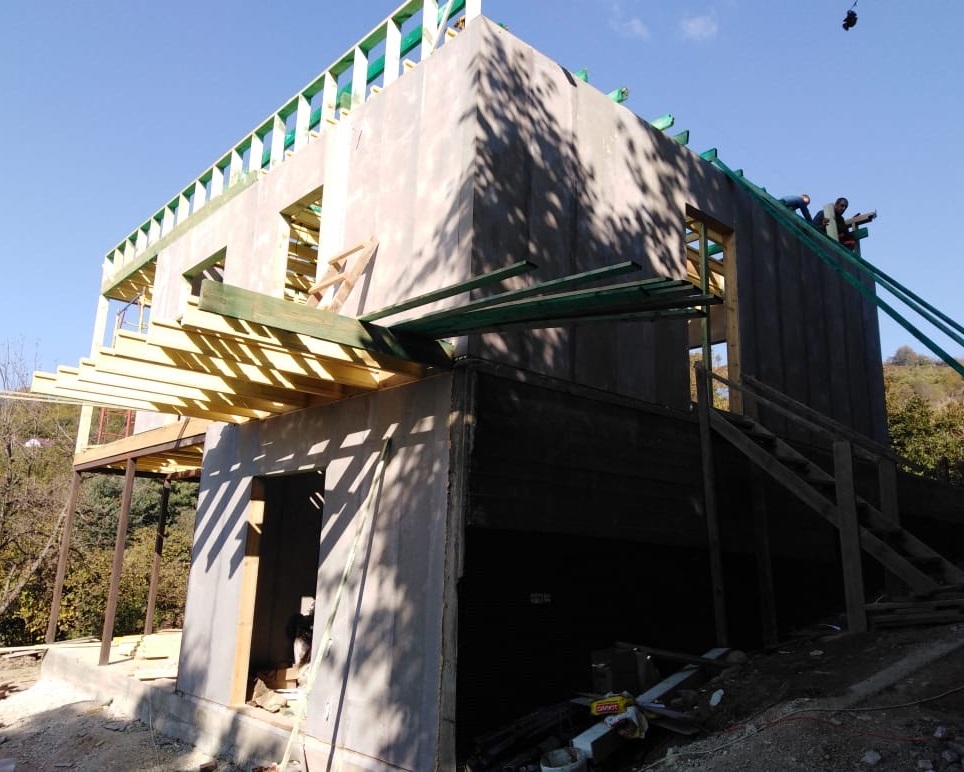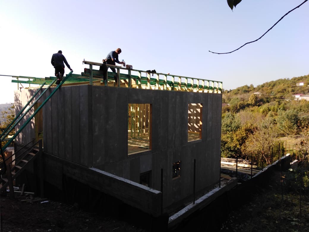 Ростверк изготовлен из калиброванного клееного бруса и защищен снаружи цементно-стружечной плитой