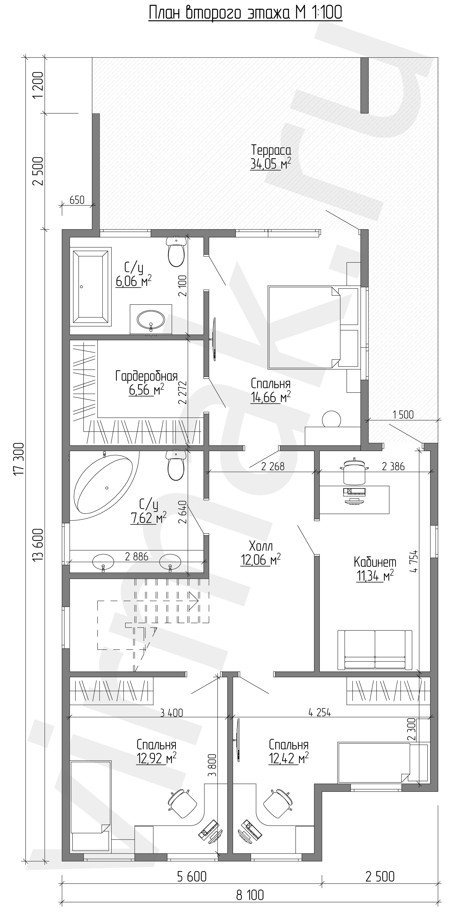 План этажа м 1:100