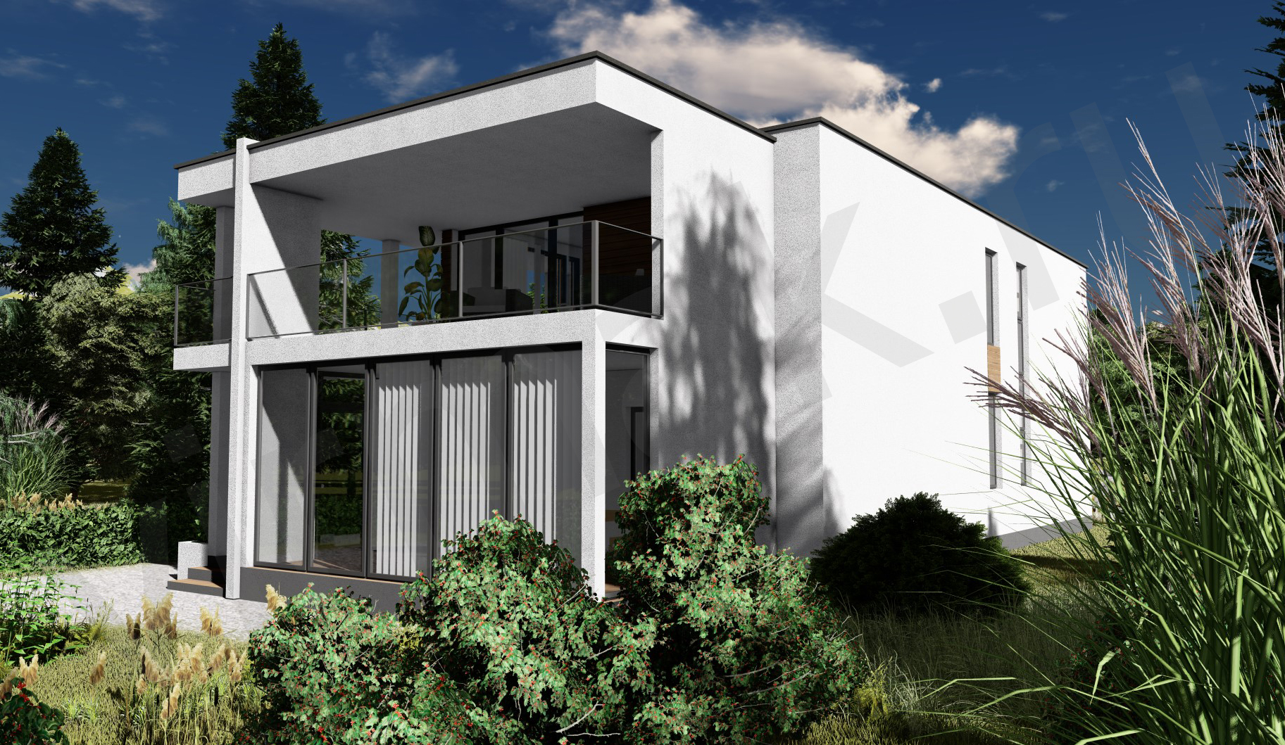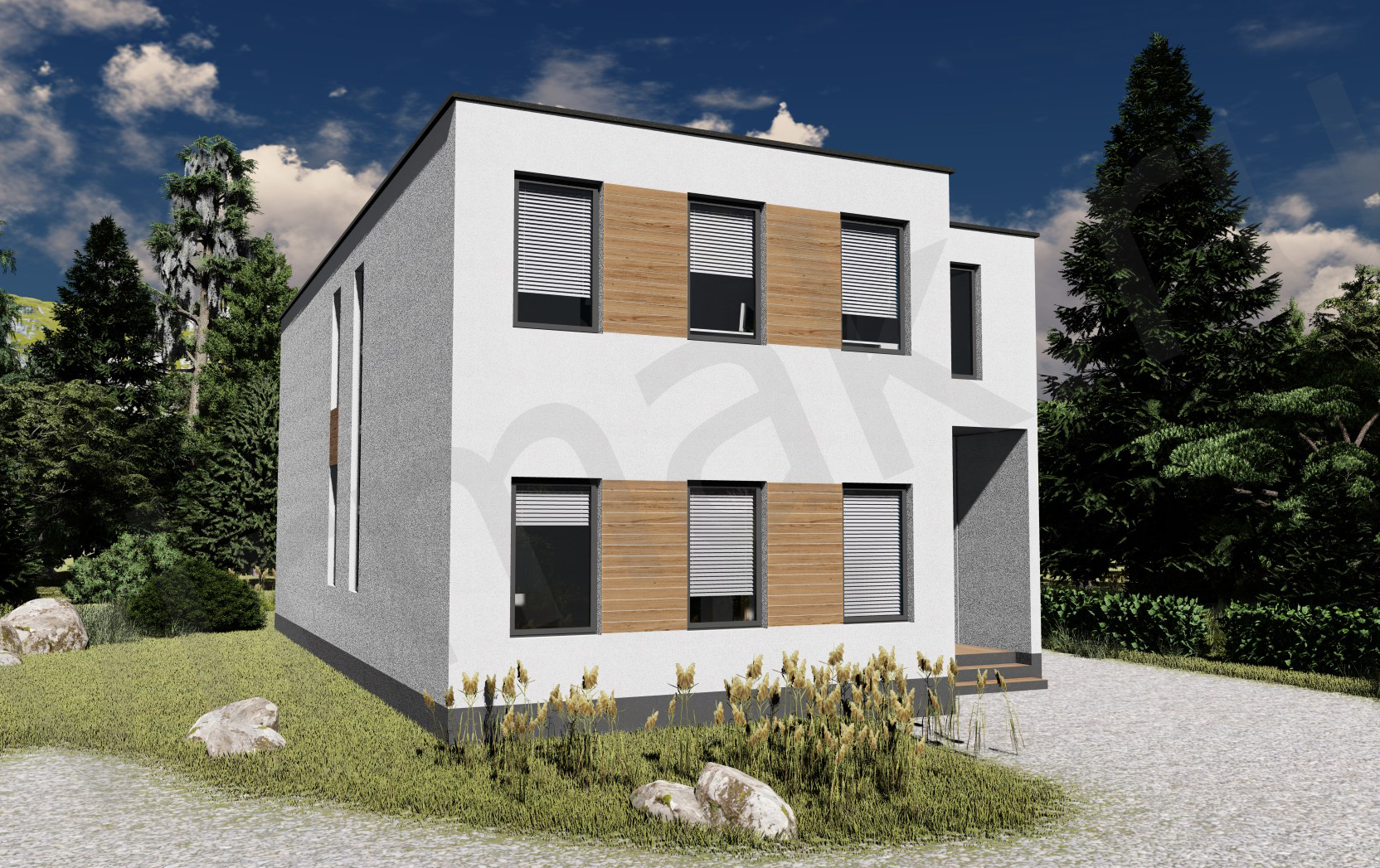 • Плоская или скатная утепленная кровля (пароизоляционная пленка, утеплитель вата на основе стекловолокна или базальта, гидро-ветрозащитная мембрана) с покрытием из металлочерепицы, полимерной мембраны или гибкой черепицы. (цена отличается от выбранного типа) (Ширина карнизного свеса от 30 см. Водосточная система в стоимость не входит