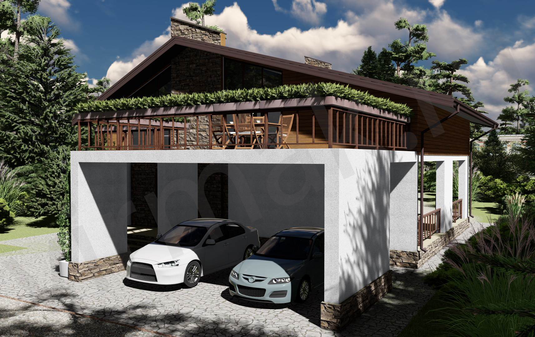 • Плоская или скатная утепленная кровля (пароизоляционная пленка, утеплитель вата на основе стекловолокна или базальта, гидро-ветрозащитная мембрана) с покрытием из металлочерепицы, полимерной мембраны или гибкой черепицы. (цена отличается от выбранного типа) (Ширина карнизного свеса от 30 см. Водосточная система в стоимость не входит