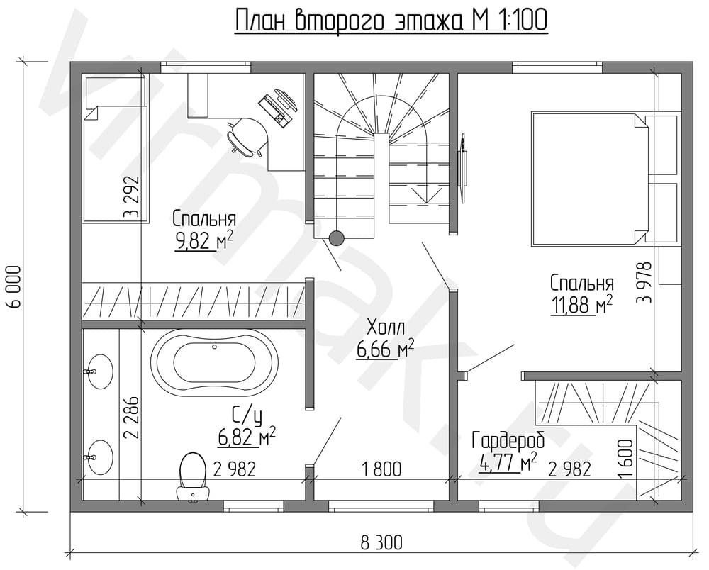 План этажа м 1:100