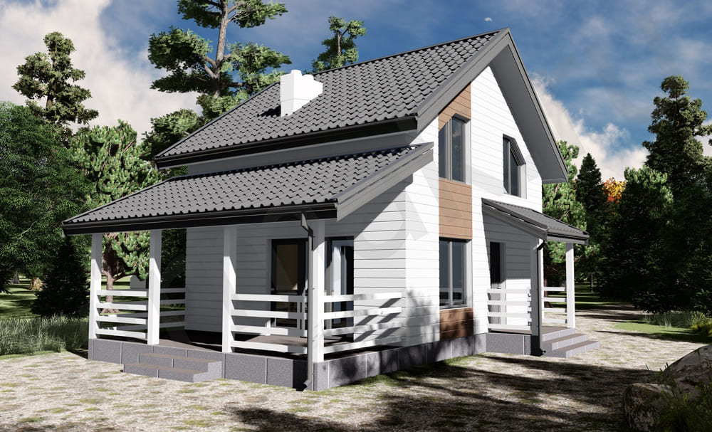 • Плоская или скатная утепленная кровля (пароизоляционная пленка, утеплитель вата на основе стекловолокна или базальта, гидро-ветрозащитная мембрана) с покрытием из металлочерепицы, полимерной мембраны или гибкой черепицы. (цена отличается от выбранного типа) (Ширина карнизного свеса от 30 см. Водосточная система в стоимость не входит